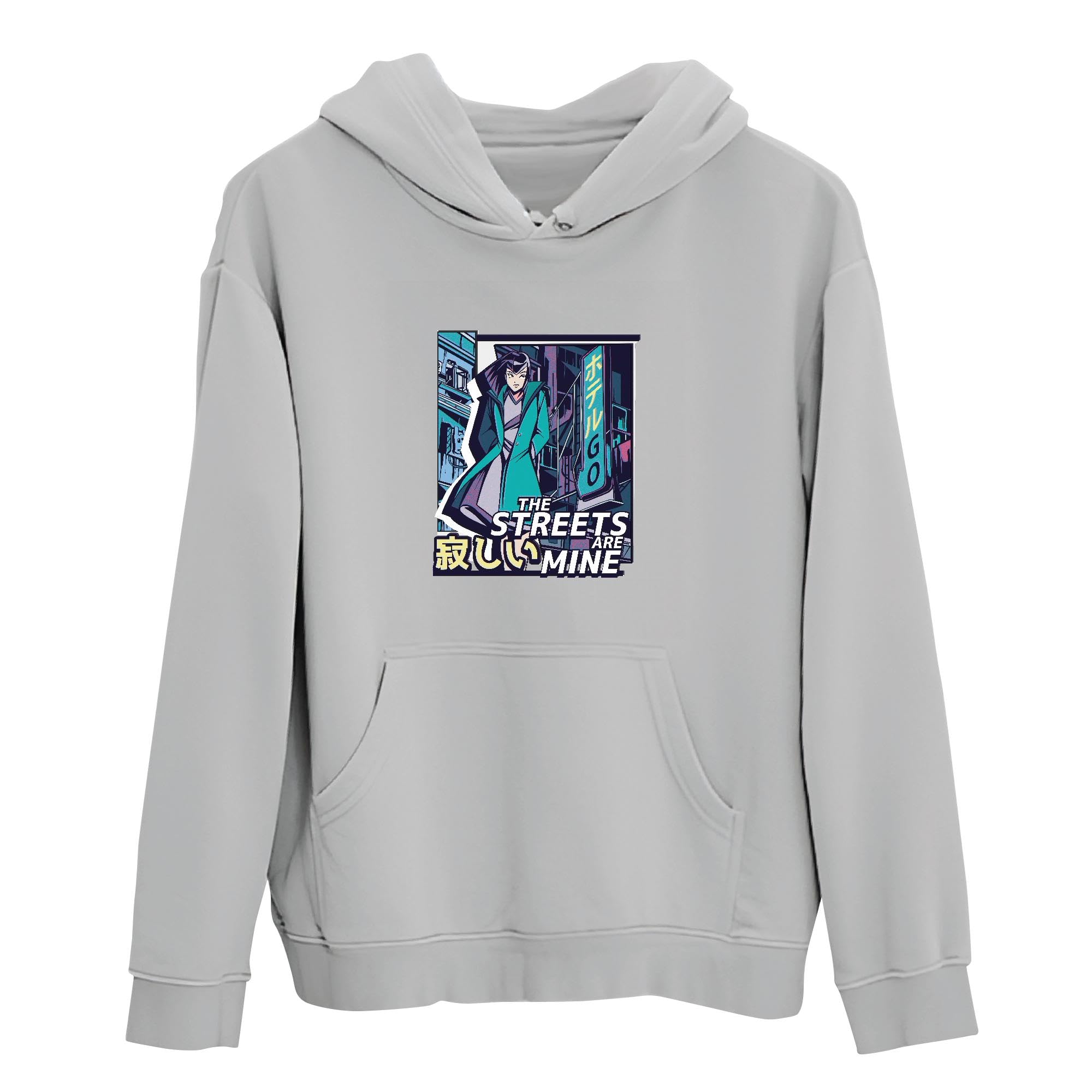 Vaporwave Anime Manga Gift for Anime Fans Girl Walking at Night Design Gray and Muticolor Unisex Hoodie