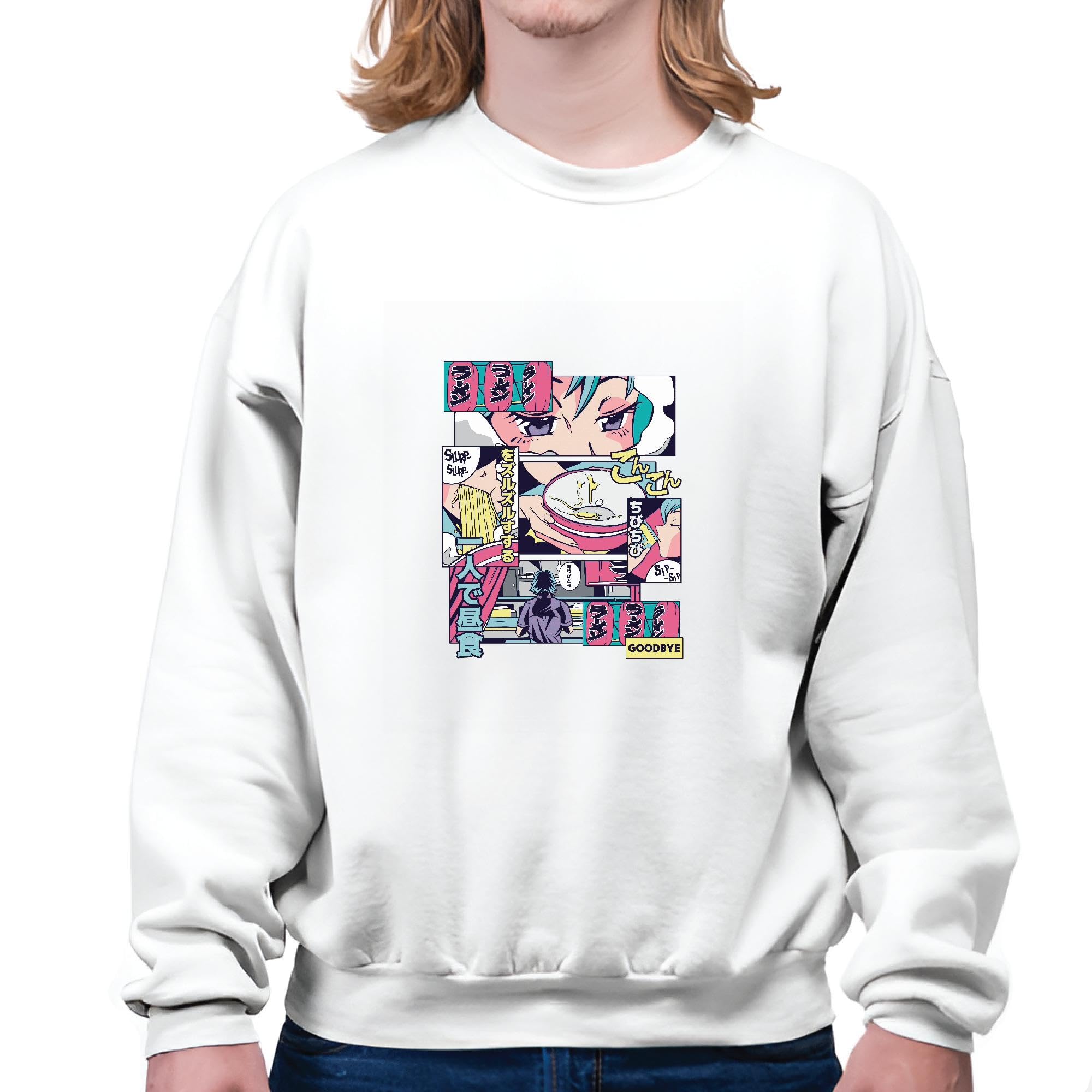 Vaporwave Anime Ramen Shop Gift for Manga Fans Food Lovers Grey White Muticolor Unisex Sweatshirt