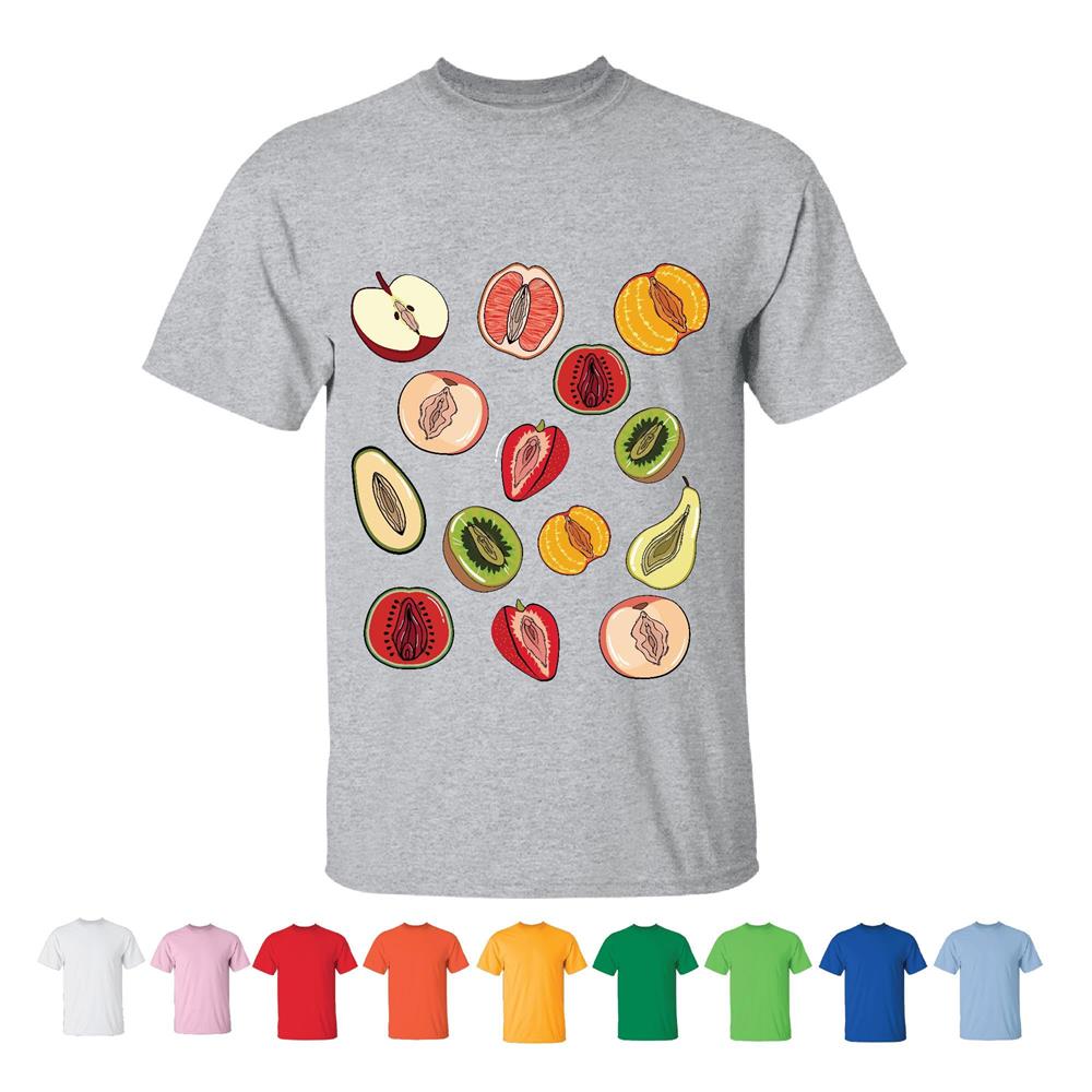 Vegan Vegetarian Inappropriate Feminist Pussy Power Novelty Gift for Women Yoni Vulva Fruit Men Women White Gray T shirt