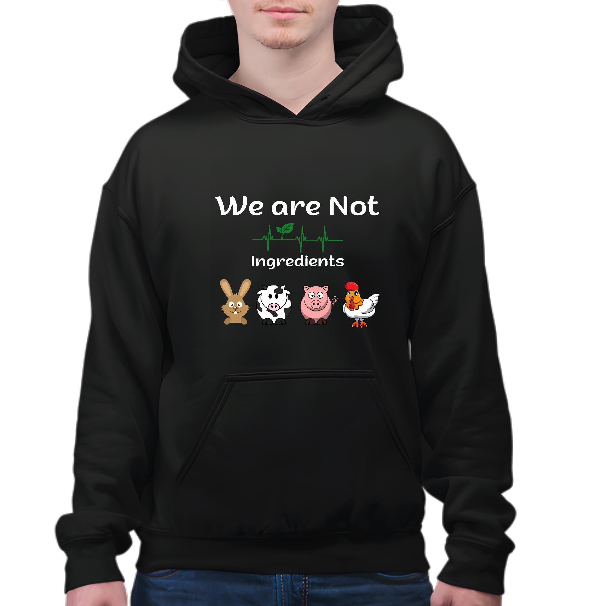 Vegan Vegetarian we are not ingredients for Animal lover Black and Muticolor Unisex Hoodie
