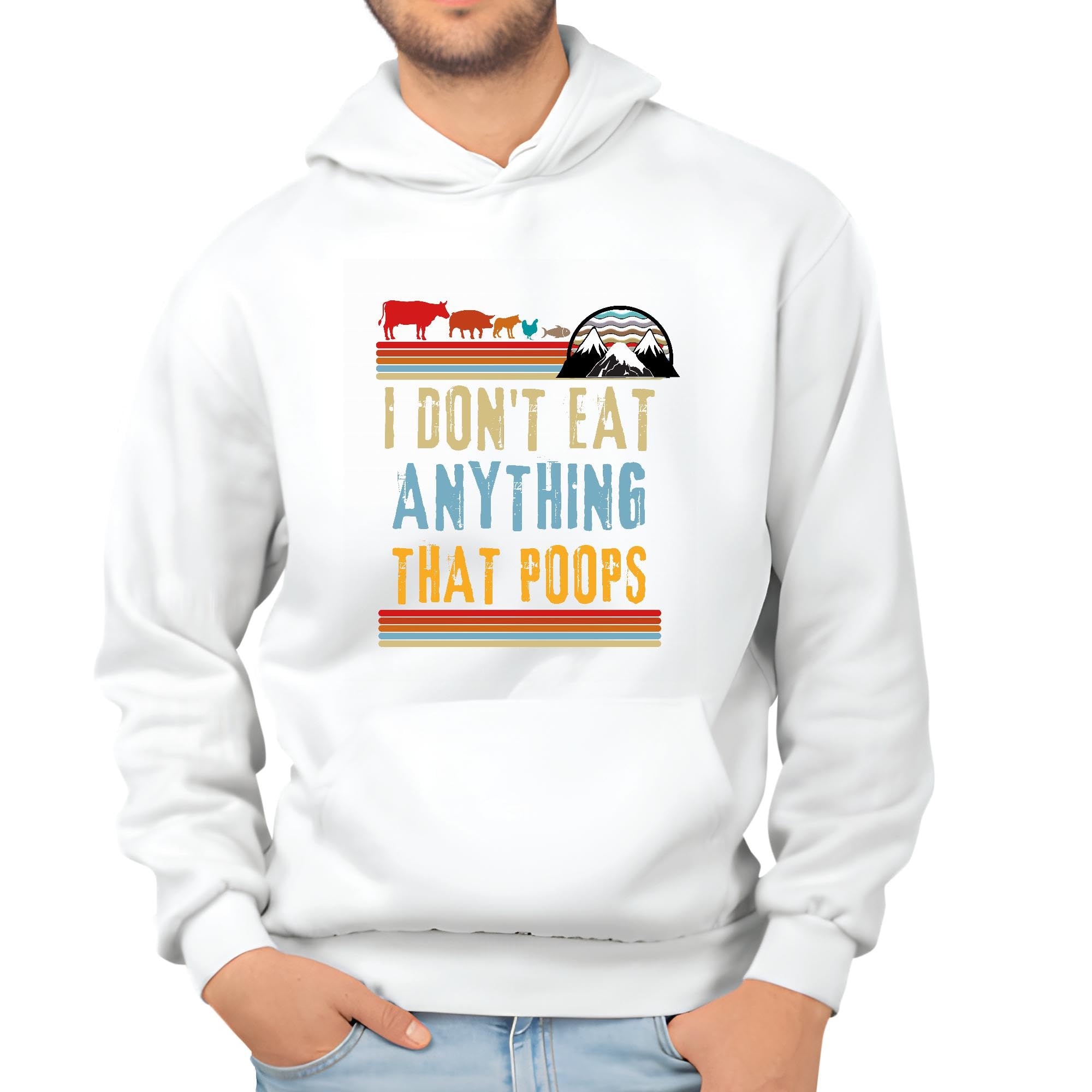 Vegan Vegetarian Idea I Do Not Eat Anything That Poops White and Muticolor Unisex Hoodie