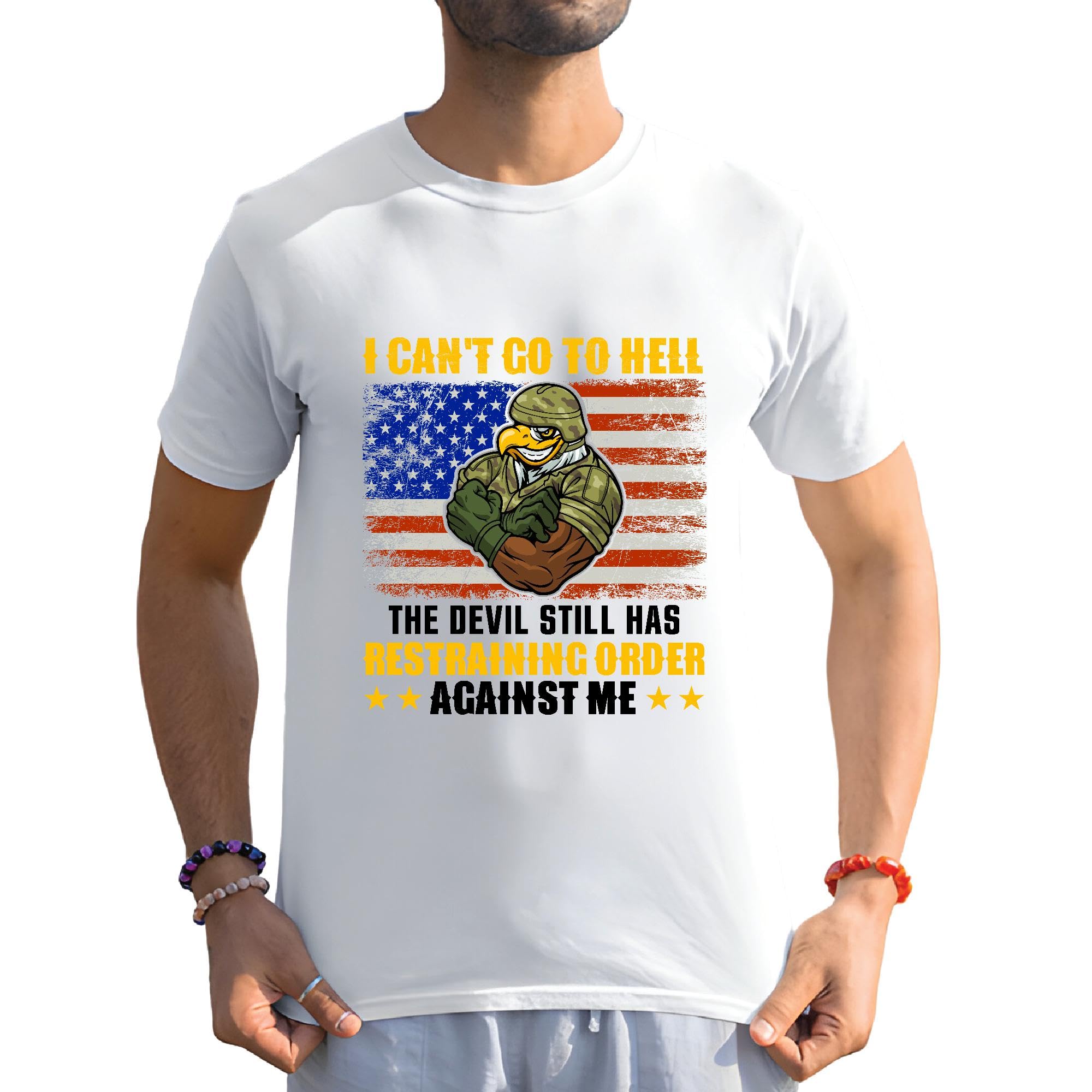 Veteran day I can not go to hell Army Restraining order again me Veteran Eagle Men Women White Gray Multicolor T shirt