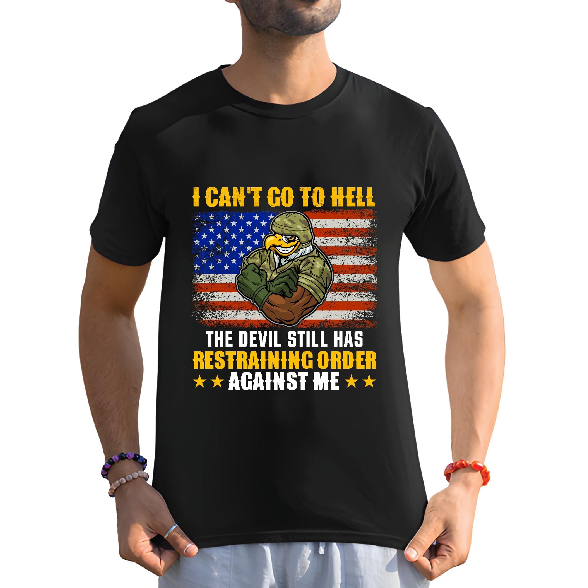 Veteran day I can not go to hell Army Restraining order again me Veteran Eagle Men Women Black Multicolor T shirt