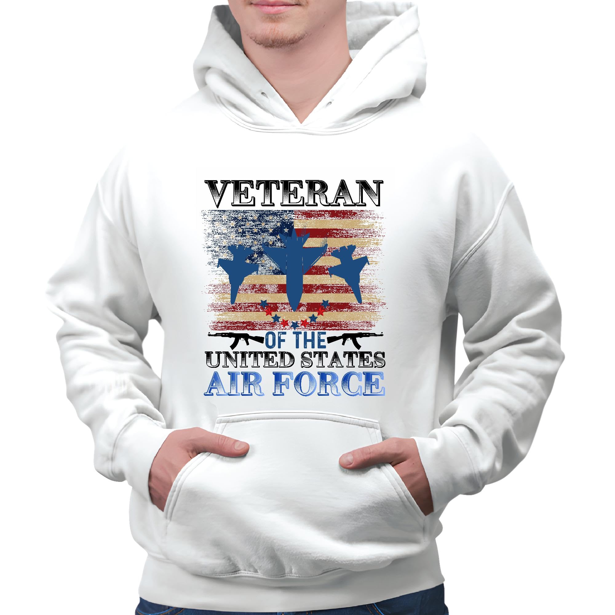Veteran Gift for Proud US Air Force Member White and Muticolor Unisex Hoodie