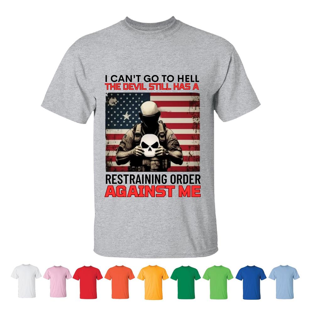 Veterans Appreciation Funny Gift Restraining Order Against Hell Devil Men Women White Gray T shirt