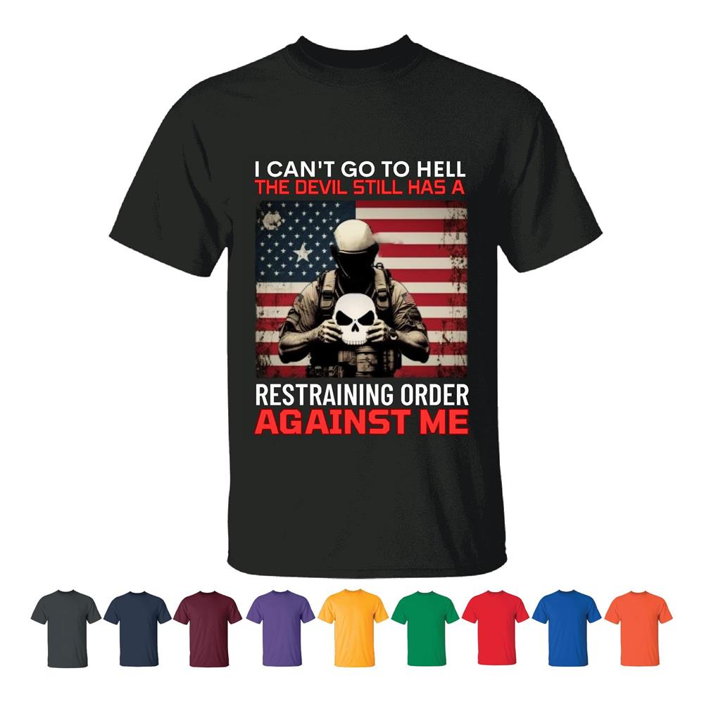 Veterans Appreciation Funny Gift Restraining Order Against Hell Devil Men Women Black T shirt