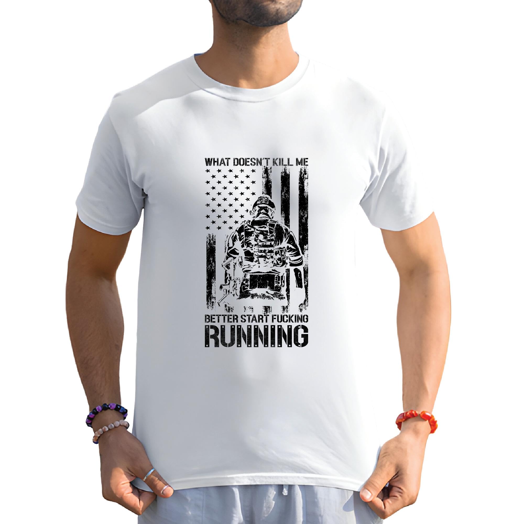 Veteran what does not Kill Me better start fuk running Men Women White Gray Multicolor T shirt