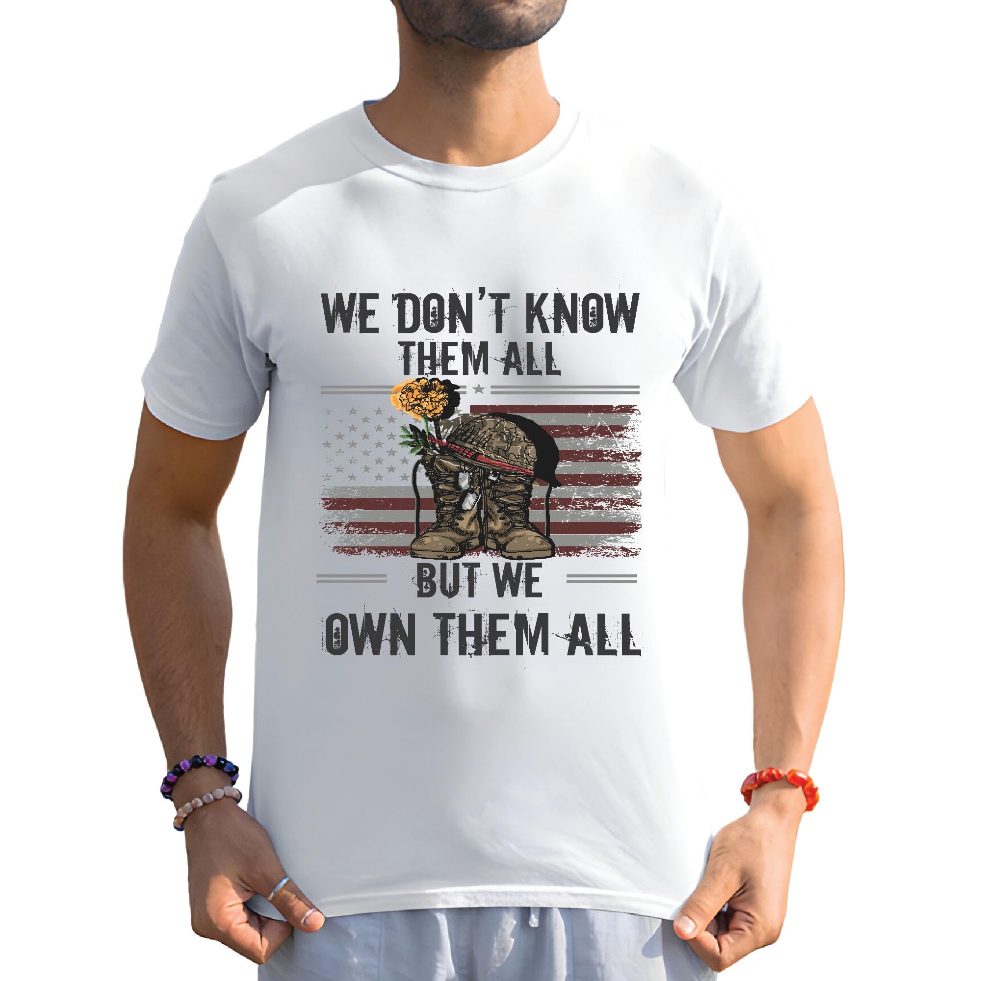 Veteran We do not know them all but we owe them Eagle US Flag Men Women White Gray Multicolor T shirt