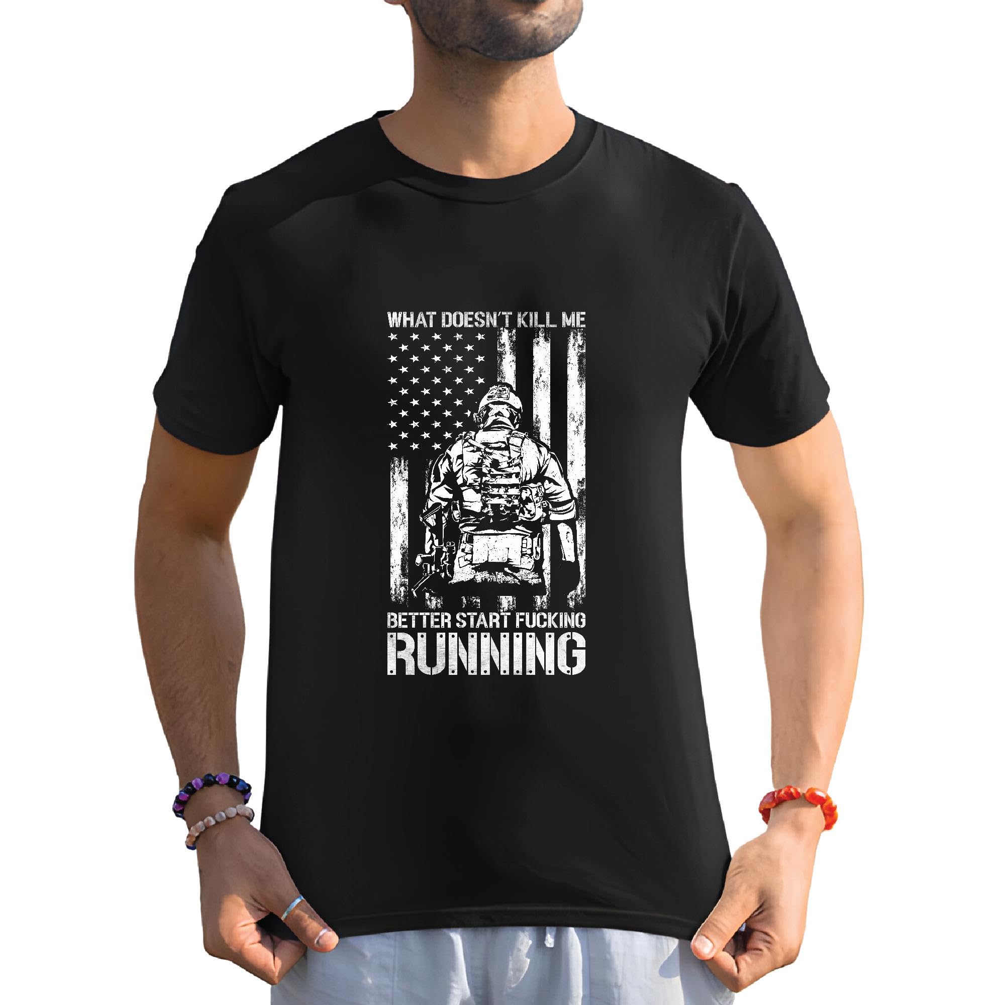 Veteran what does not Kill Me better start fuk running Men Women Black Multicolor T shirt