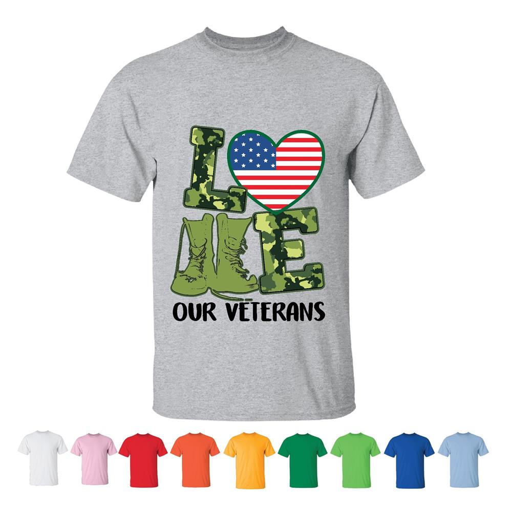 Veterans Day for Proud Military US Flag Fans Men Women White Gray T shirt