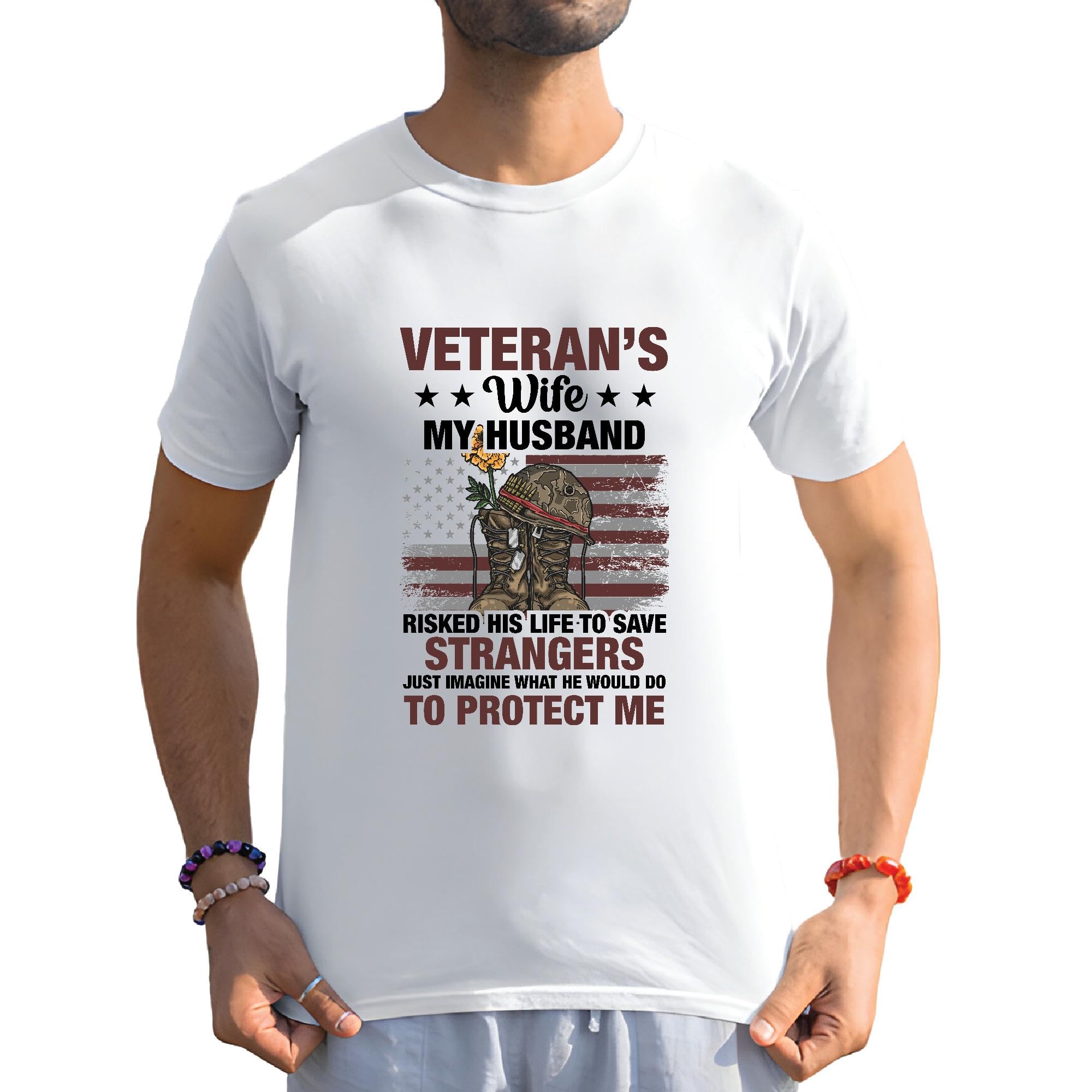 Veterans Wife my Husband American US flag to protect me Men Women White Gray Multicolor T shirt