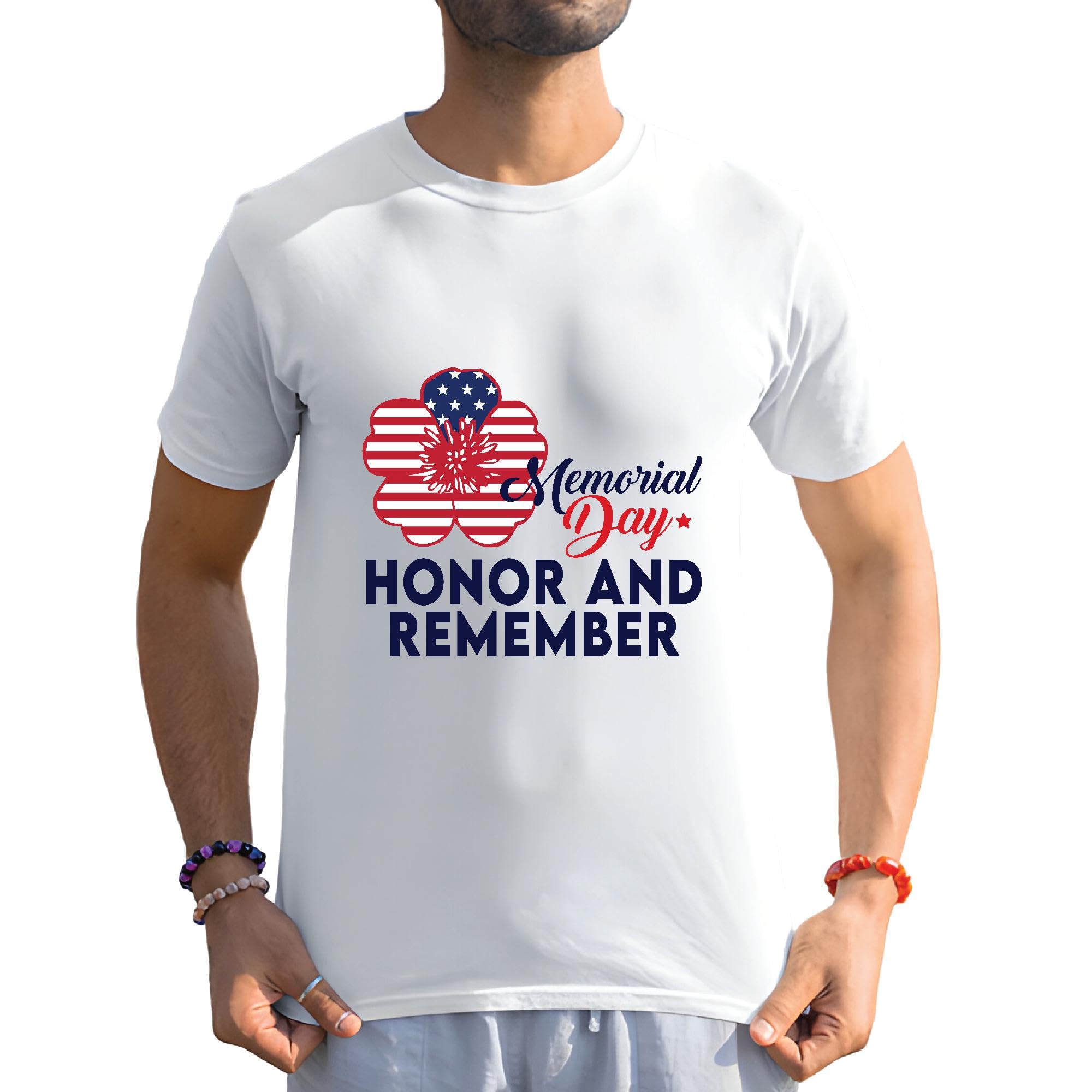 Veterans Memorial day honor and remember flower flag Men Women White Gray Multicolor T shirt