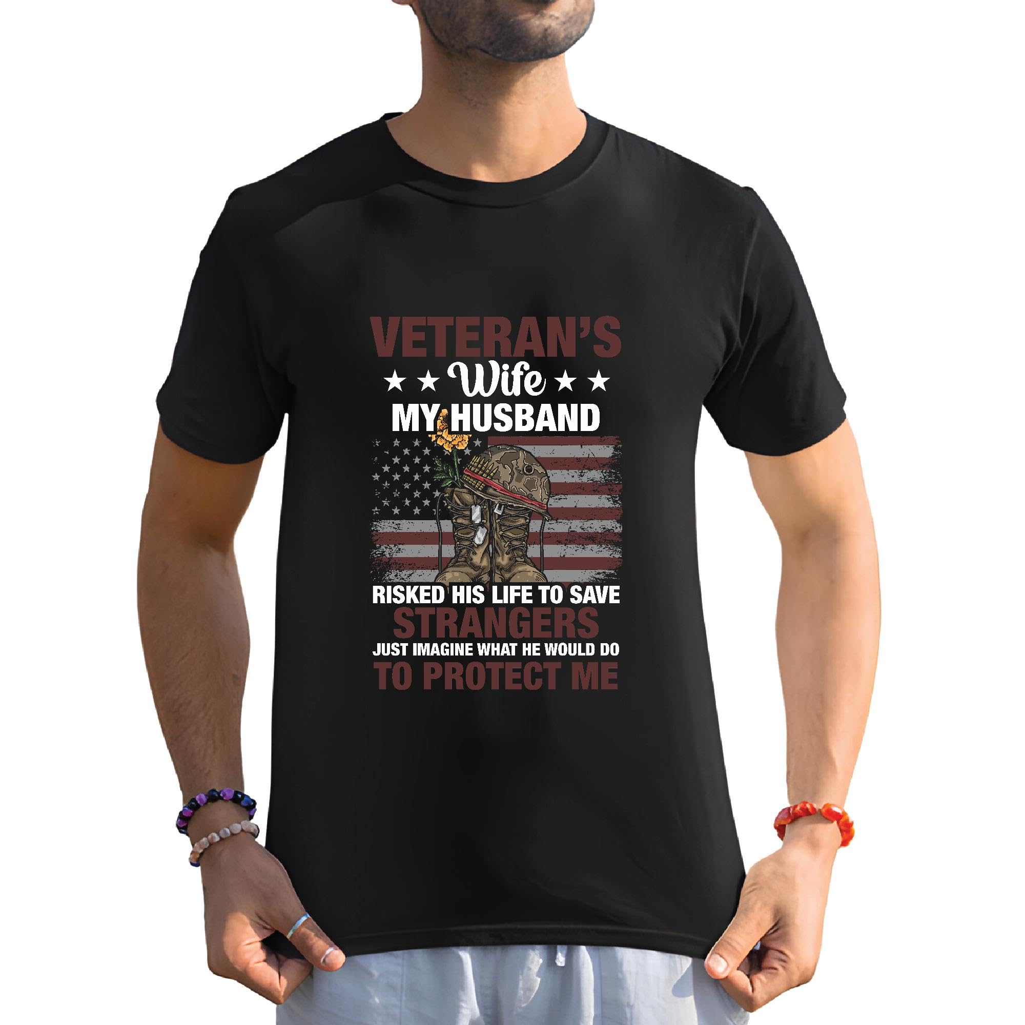Veterans Wife my Husband American US flag to protect me Men Women Black Multicolor T shirt