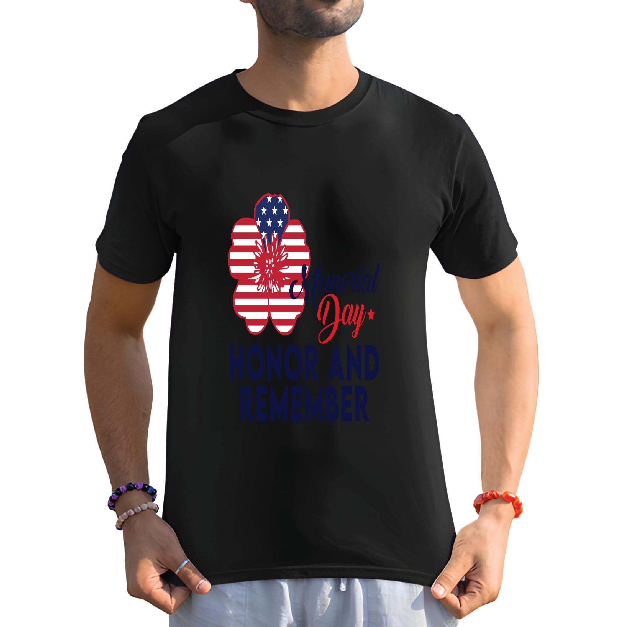 Veterans Memorial day honor and remember flower flag Men Women Black Multicolor T shirt