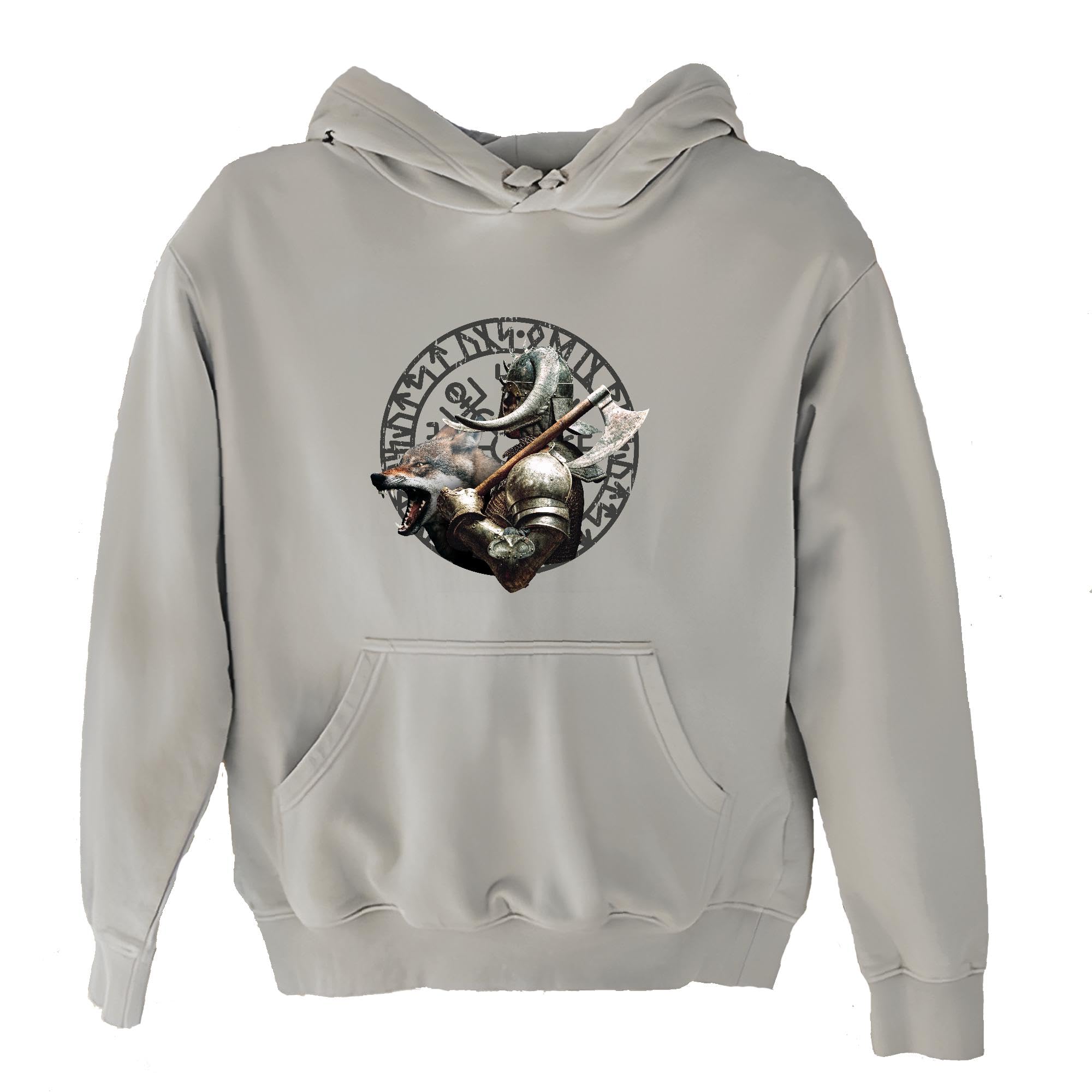 Viking Wolf Axe Design Gift Perfect Present Idea for Viking and Wolf Lovers Gray and Muticolor Unisex Hoodie