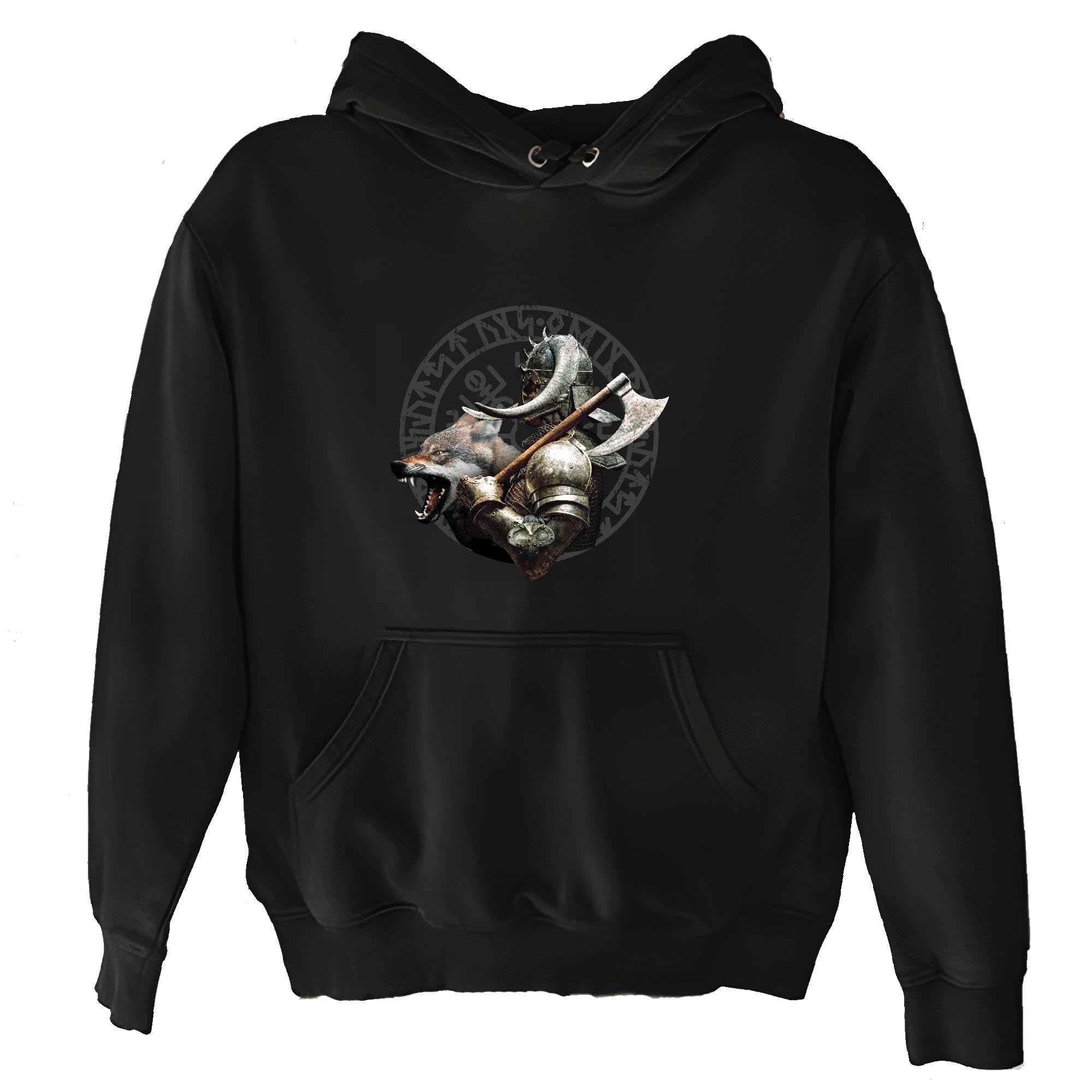 Viking Wolf Axe Design Gift Perfect Present Idea for Viking and Wolf Lovers Black and Muticolor Unisex Hoodie