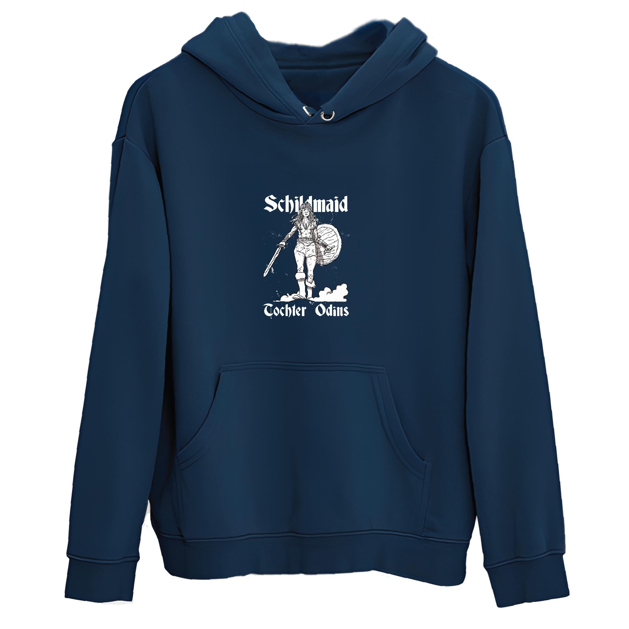 Viking Woman Warrior Gift Hand Drawn Artwork for History Lovers Navy and Muticolor Unisex Hoodie