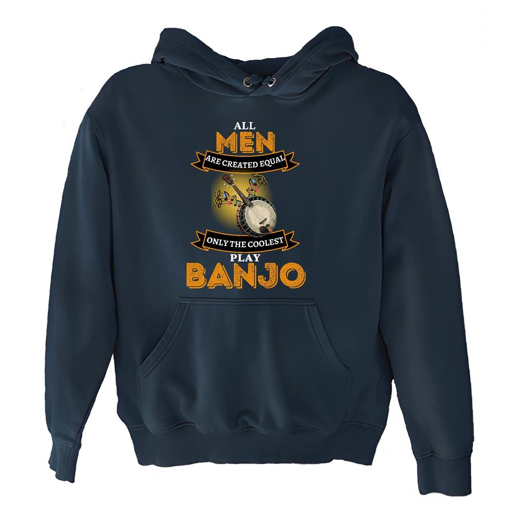 Vintage All Men Are Created Equal Banjoist Musician Bluegrass Navy and Muticolor Unisex Hoodie
