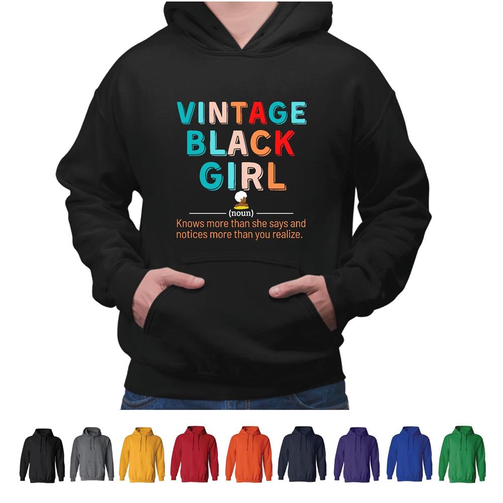 Vintage for Black Girls Who Know More Than They Say Black and Muticolor Unisex Hoodie