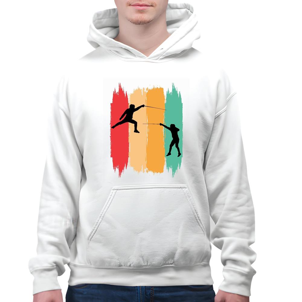 Vintage Fencing Sports Sword Fencer Fighting Retro Fencing Lover White and Muticolor Unisex Hoodie