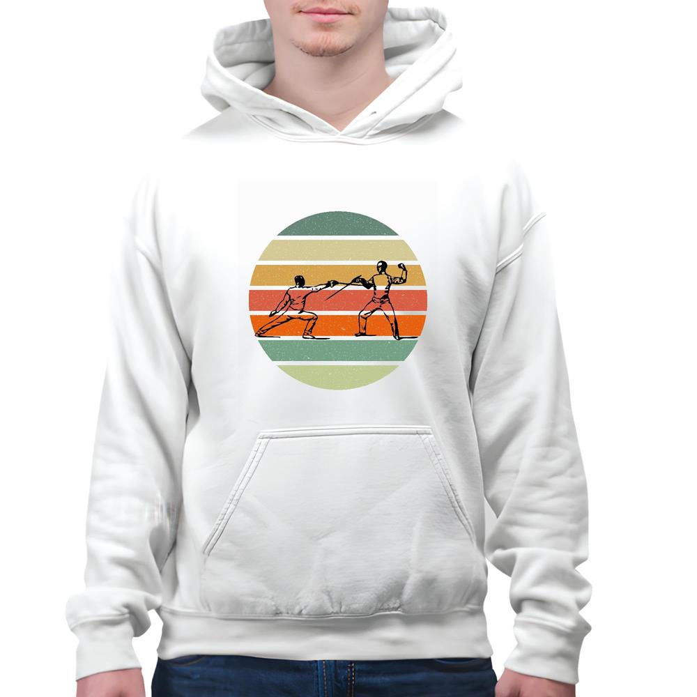 Vintage Fencing Sports Sword Fencer Fighting Retro Fencing White and Muticolor Unisex Hoodie