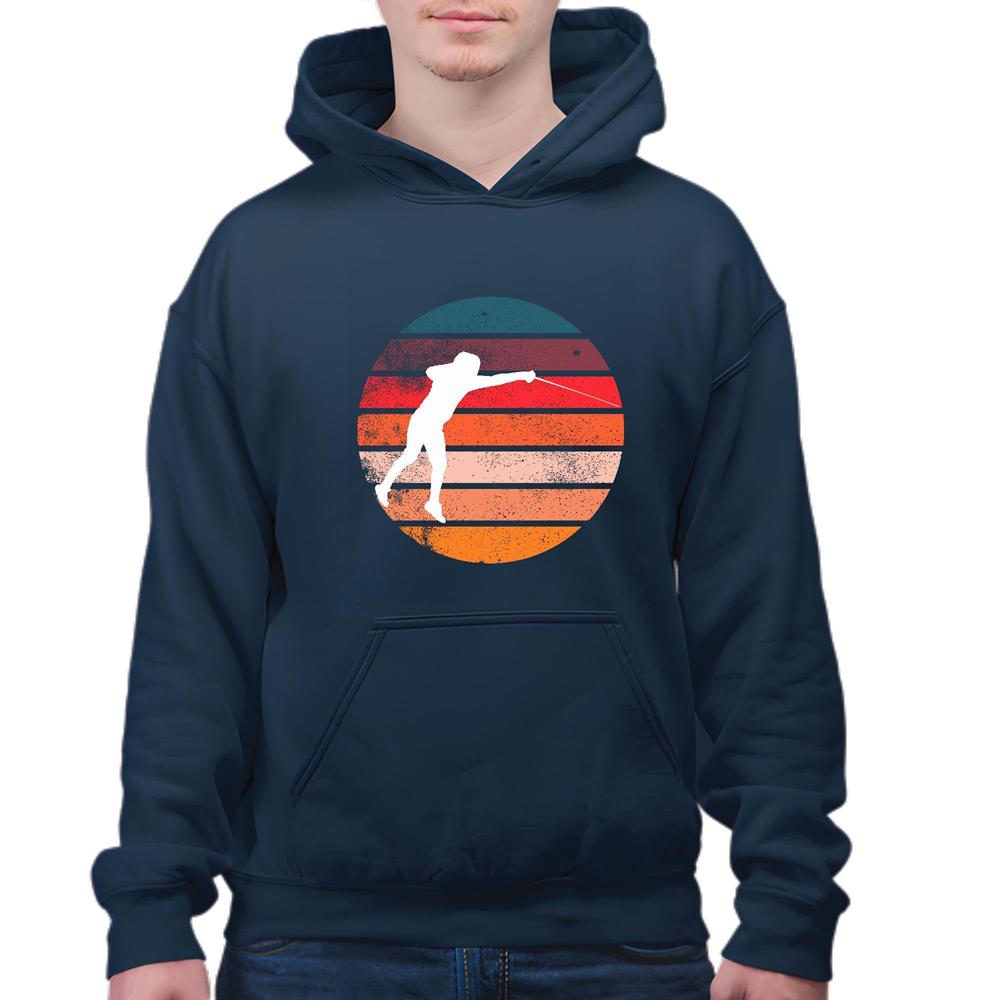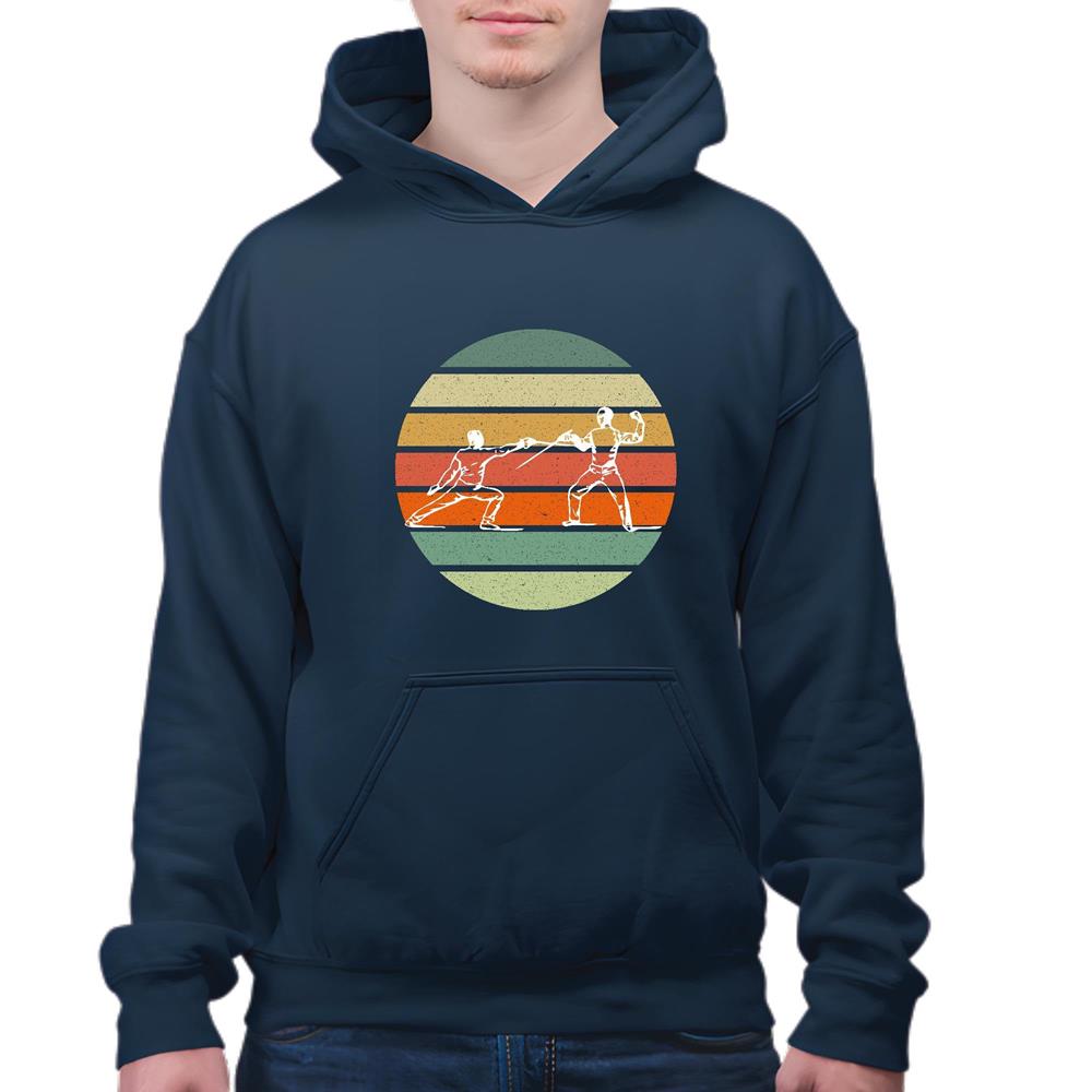 Vintage Fencing Sports Sword Fencer Fighting Retro Fencing Navy and Muticolor Unisex Hoodie