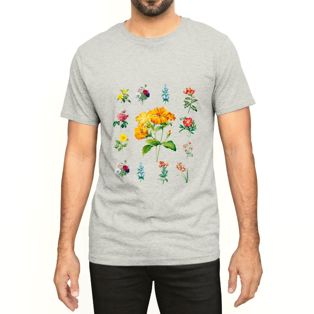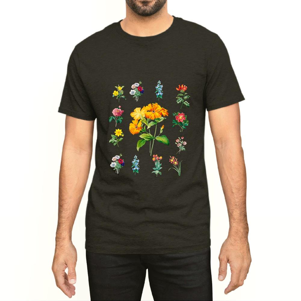 Vintage Flower Botanical Chart for Nature Lovers Men Women White Gray Multicolor T shirt
