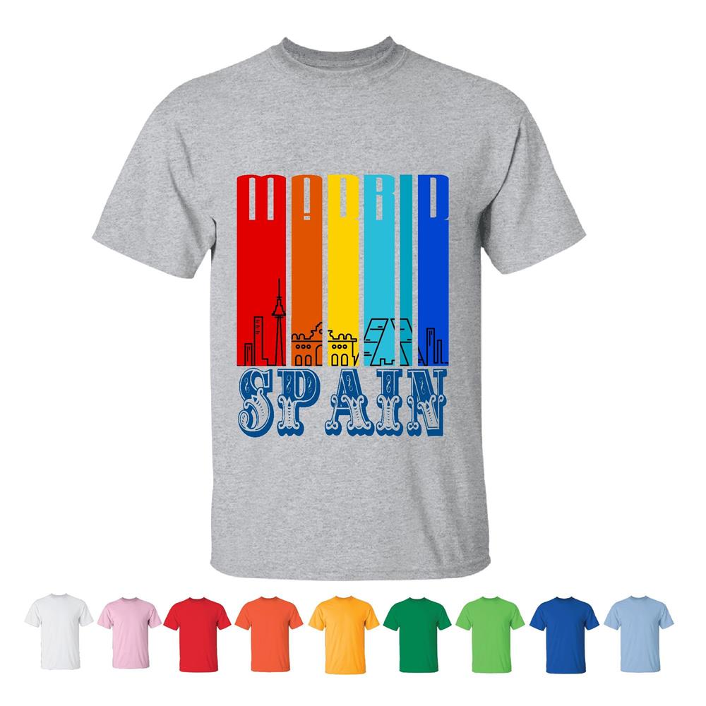 Vintage Madrid Spain Flag Gift for Madrid Fans Men Women White Gray T shirt