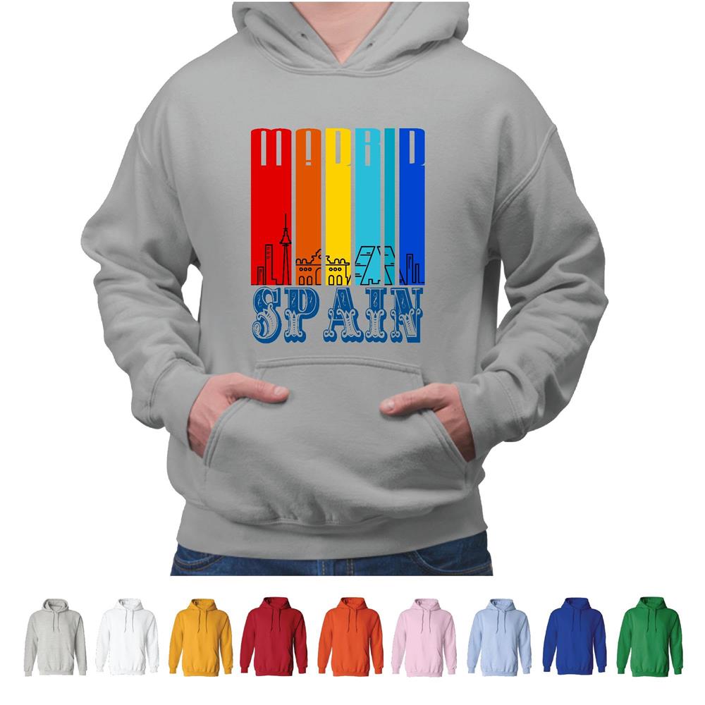 Vintage Madrid Spain Flag Gift for Madrid Fans Gray and Muticolor Unisex Hoodie