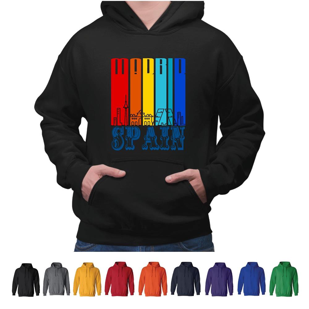 Vintage Madrid Spain Flag Gift for Madrid Fans Black and Muticolor Unisex Hoodie