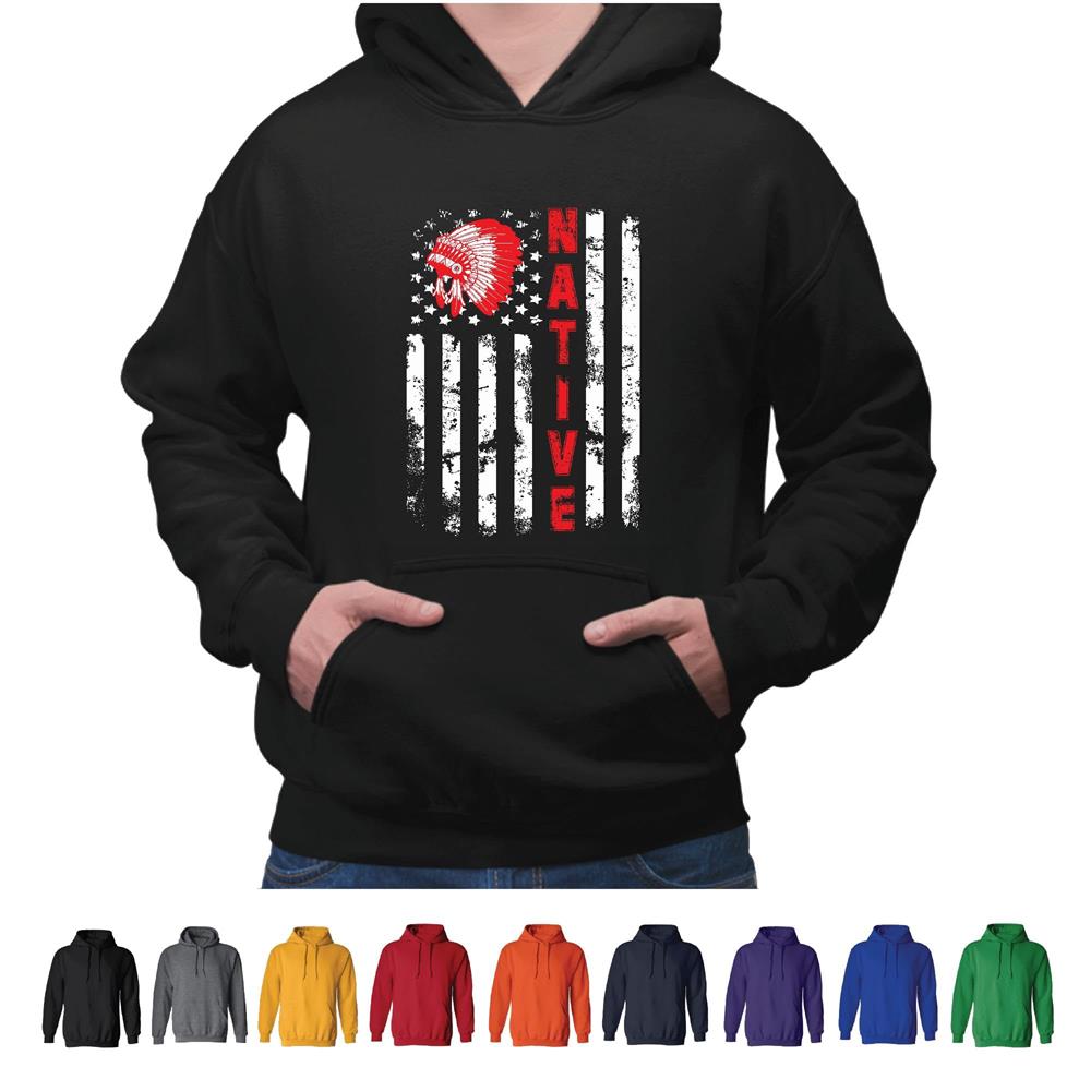 Vintage Native American Flag Celebrating Native American Day in the USA Black and Muticolor Unisex Hoodie