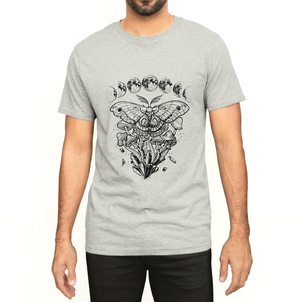Vintage Occult Art Moon Phase Butterfly Gift for Occult Lovers Men Women White Gray Multicolor T shirt