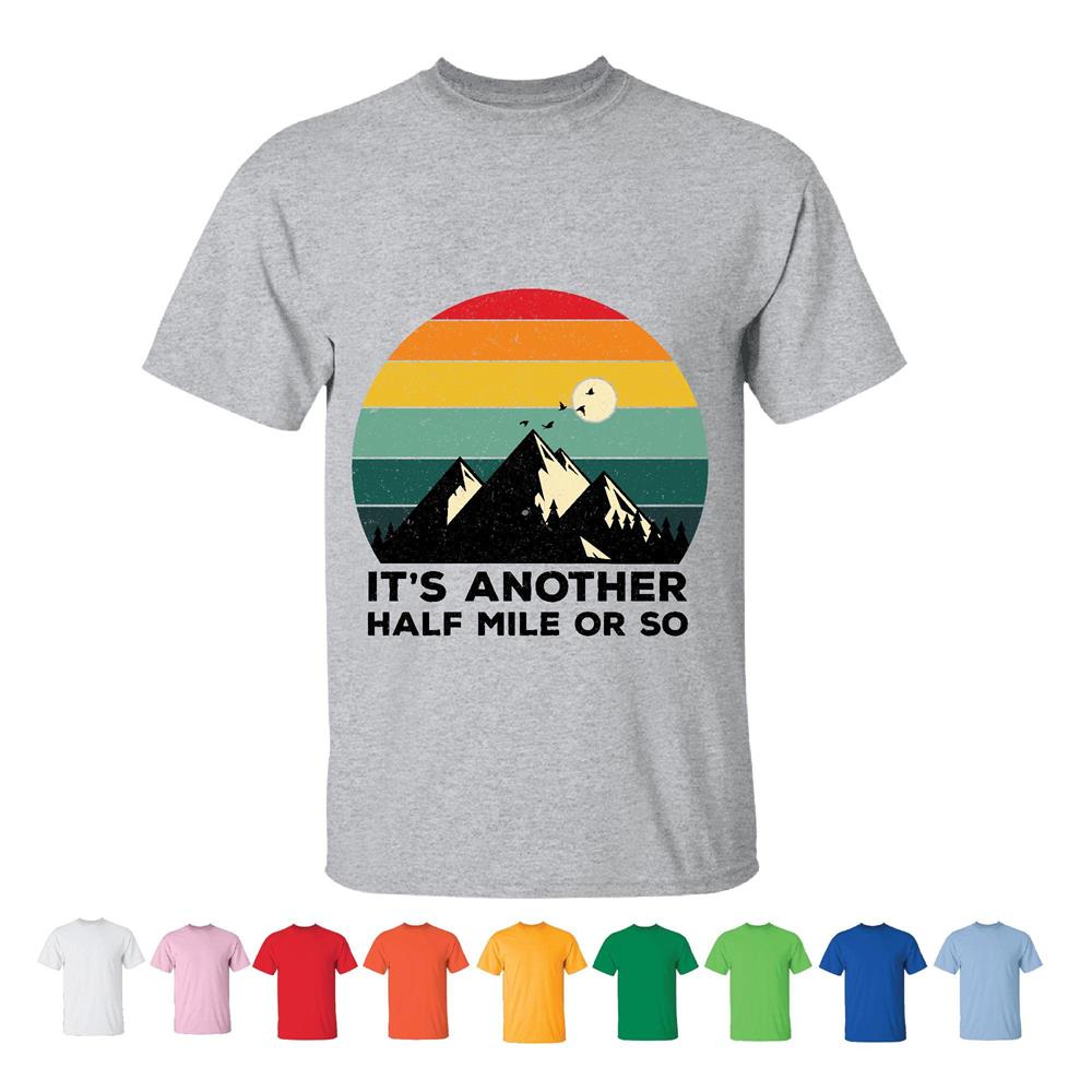 Vintage Sunset its another half mile or so Hiking Men Women White Gray T shirt