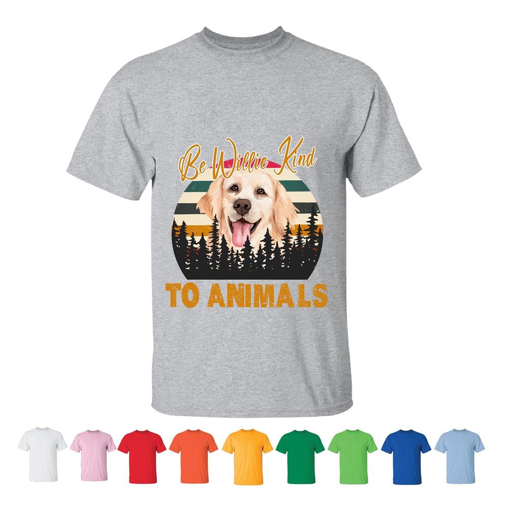 Vintage Willie Kind to Animals Golden Retriever Humor for Dog Lovers Men Women White Gray T shirt