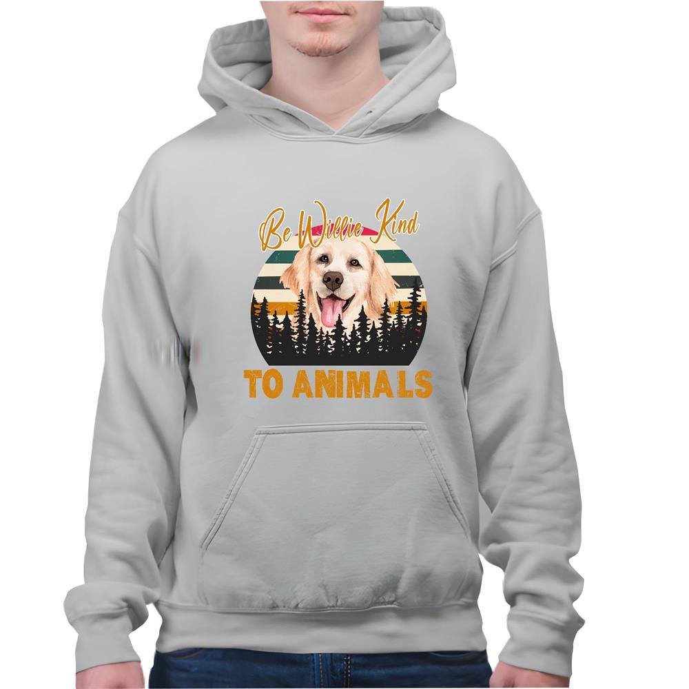 Vintage Willie Kind to Animals Golden Retriever Humor for Dog Lovers Gray and Muticolor Unisex Hoodie
