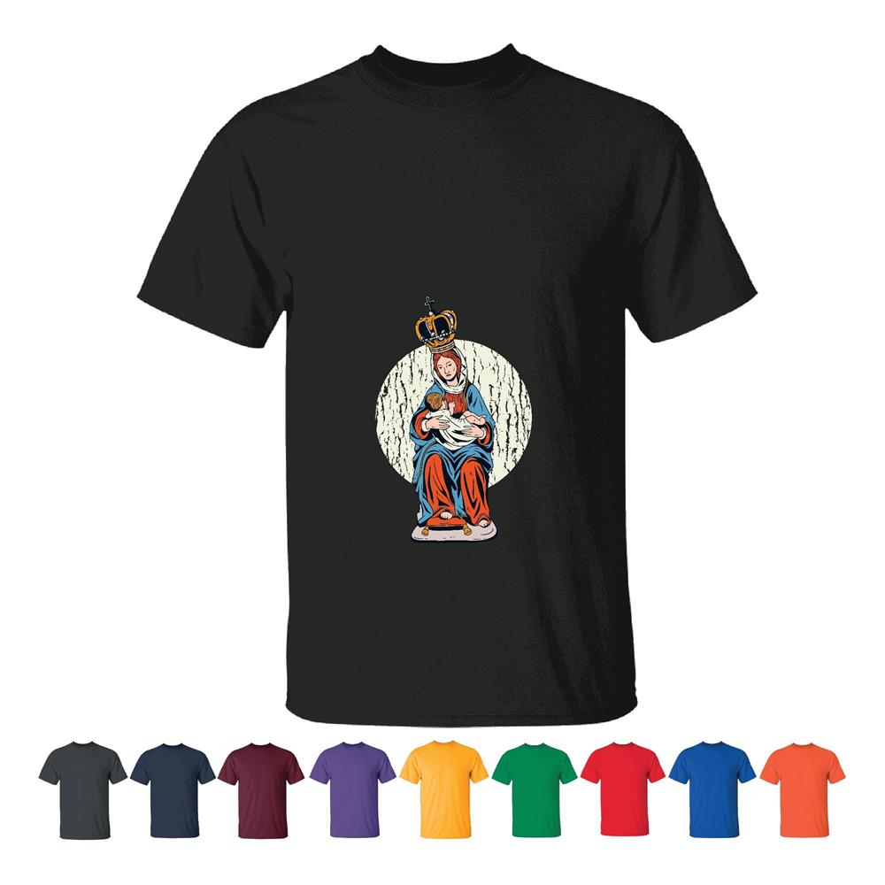 Virgin Mary Statue Gift for Catholic Believers Baby Jesus Figurine Men Women Black T shirt