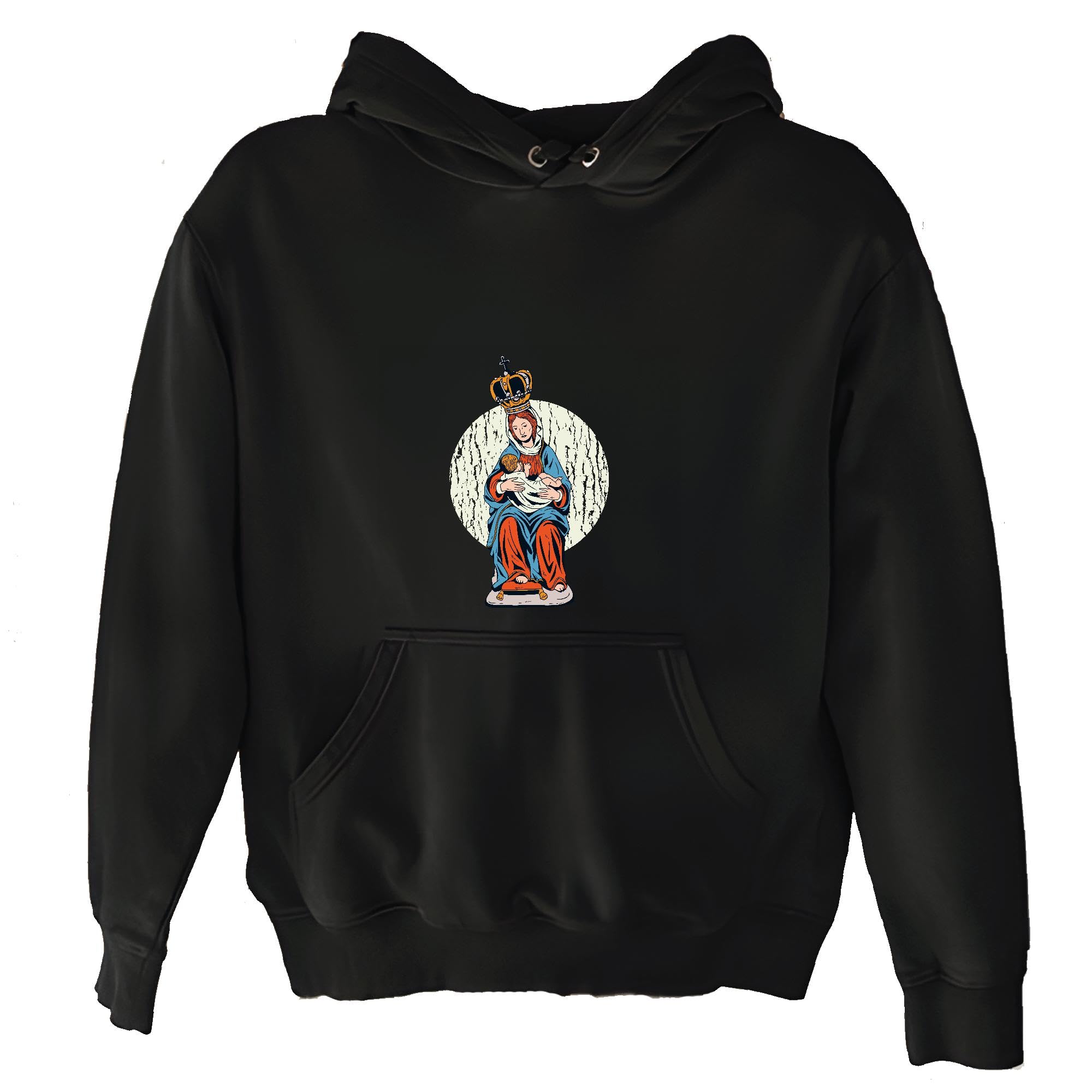 Virgin Mary Statue Gift for Catholic Believers Baby Jesus Figurine Black and Muticolor Unisex Hoodie