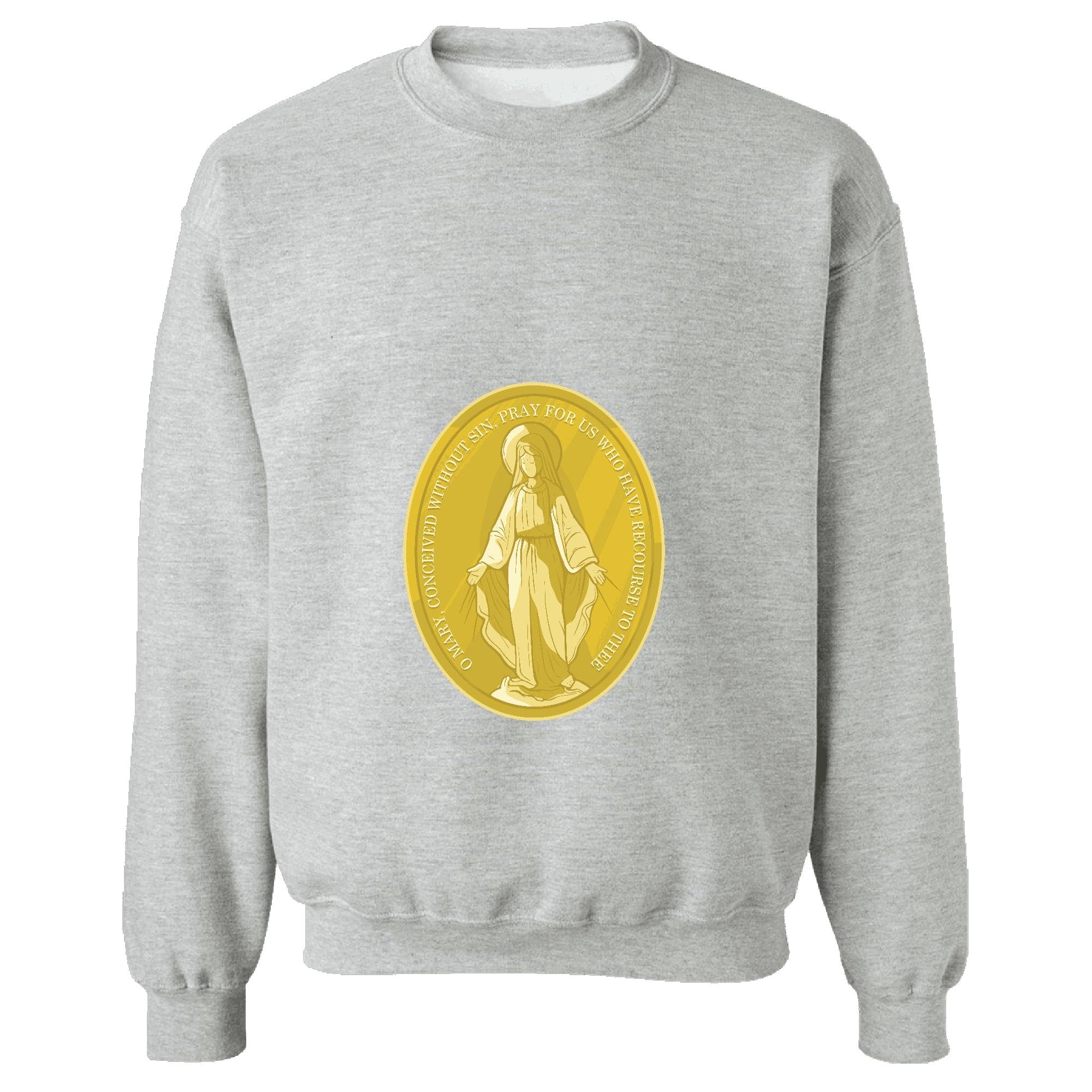 Virgin Mary Medal Gift for Catholics Inspirational Quote on Gold Plated Medal Grey Muticolor Unisex Sweatshirt