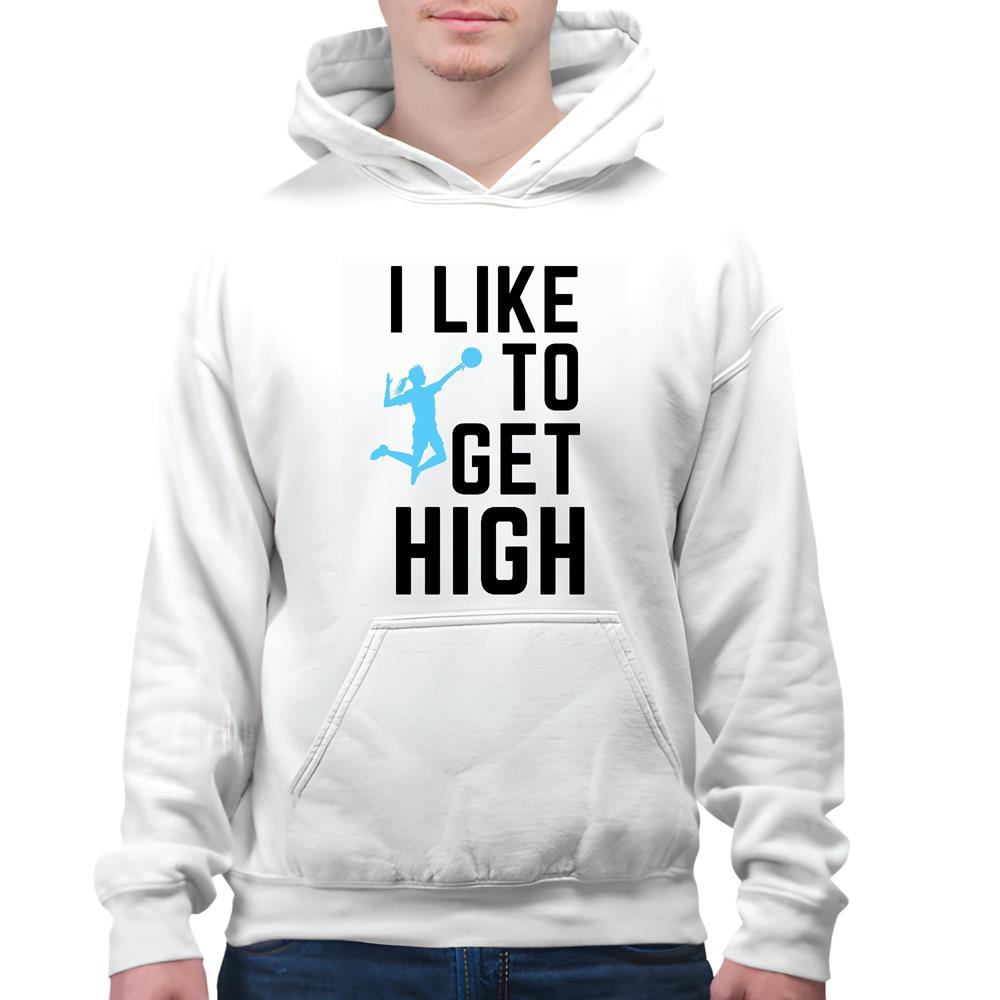 Volleyball Girl I like to get high for Volleyball Lover White and Muticolor Unisex Hoodie