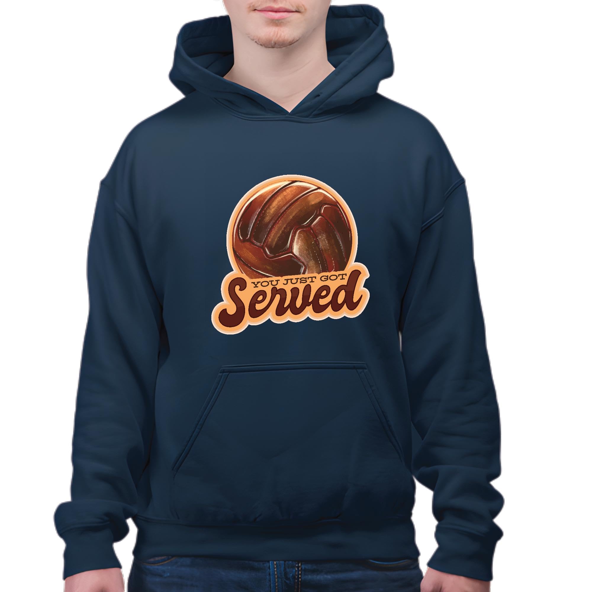 Volleyball Gift for Sports Fans Realistic Volleyball with Quote You Just Got Served Navy and Muticolor Unisex Hoodie