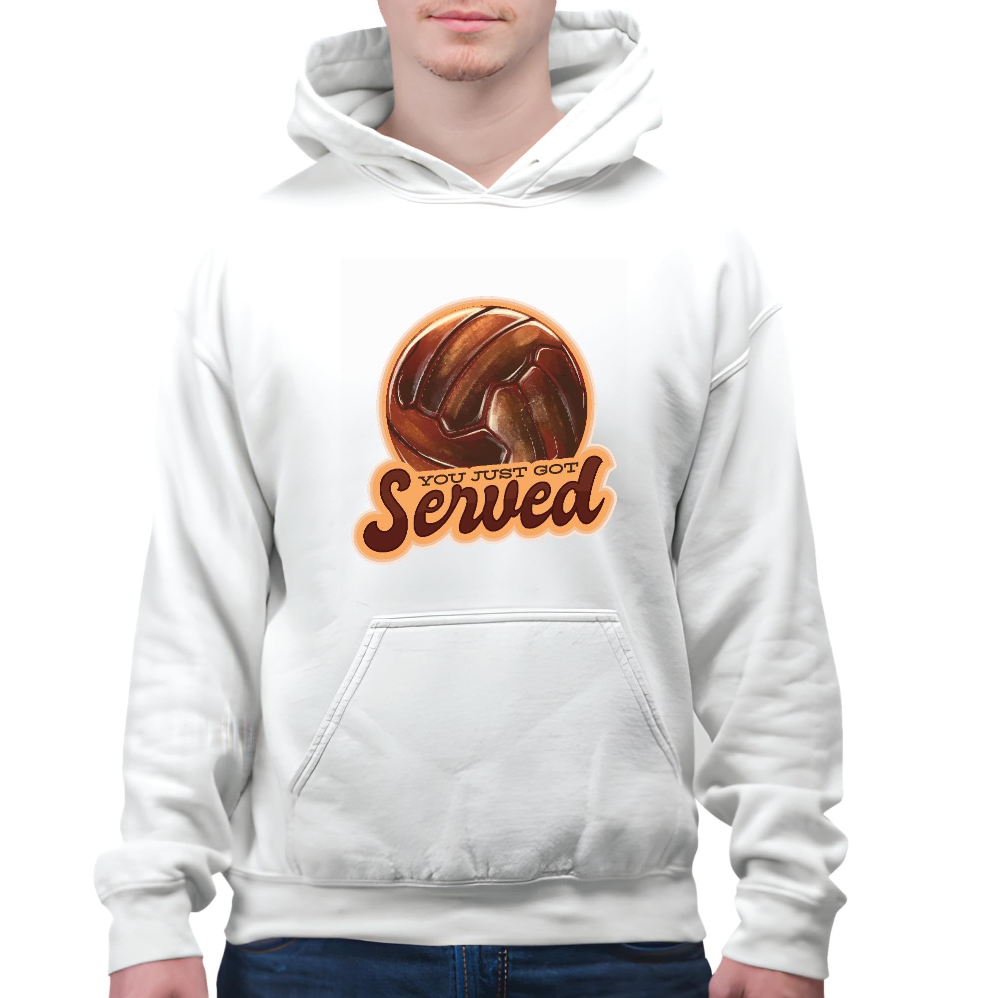 Volleyball Gift for Sports Fans Realistic Volleyball with Quote You Just Got Served White and Muticolor Unisex Hoodie