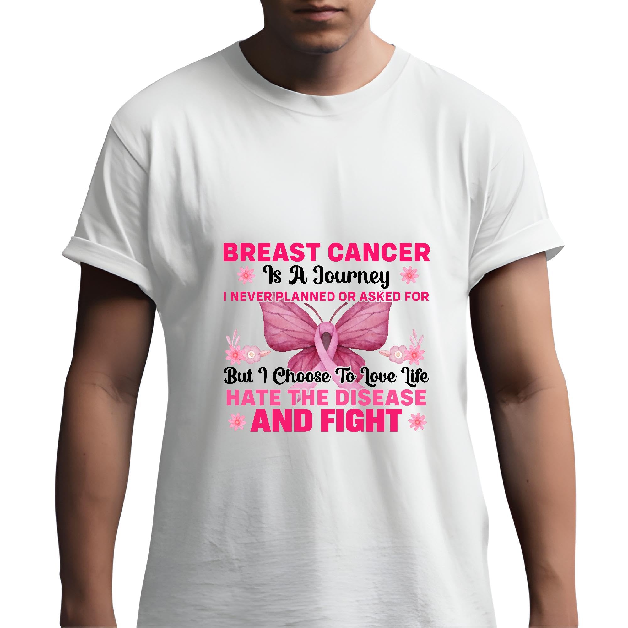 Breast Cancer Journey for Fighters of Hate and Pink Ribbon Men Women White Gray Multicolor T shirt