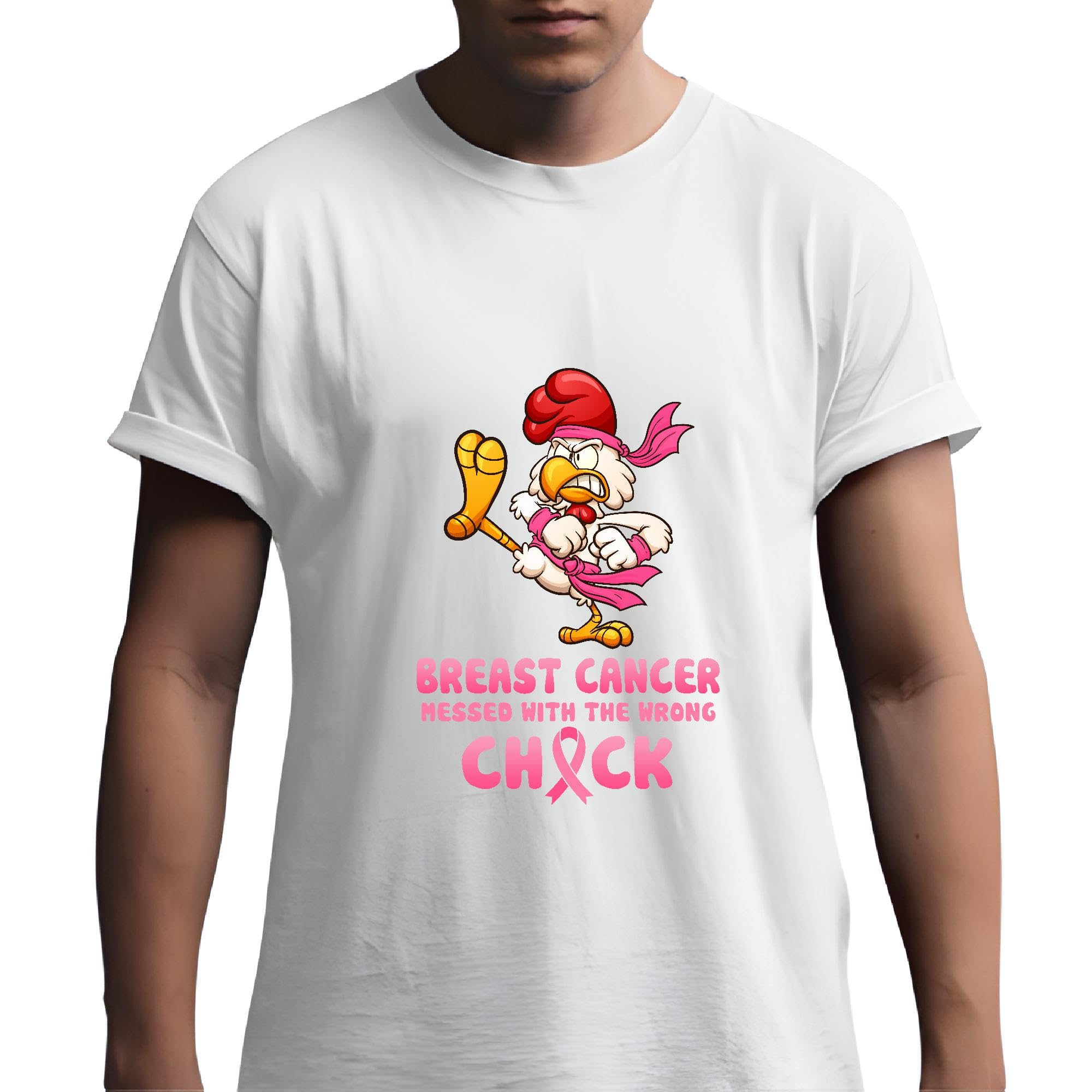 Breast Cancer messed with the wrong Chick Breast Cancer Awareness ribbon Men Women White Gray Multicolor T shirt