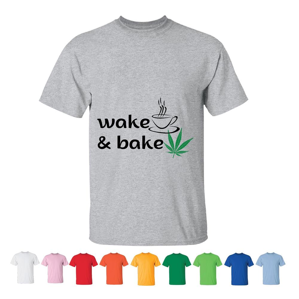 Wake and Bake funny Marijuana lover Men Women White Gray T shirt