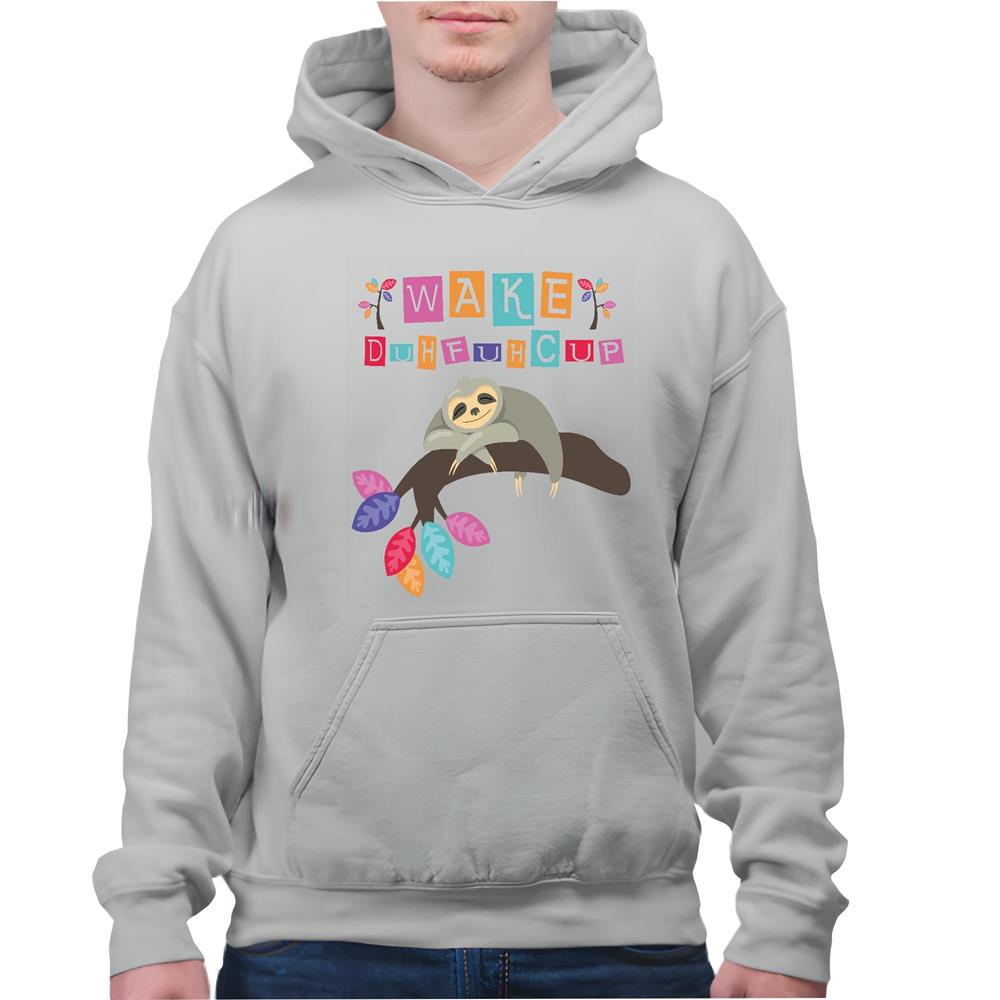 Wake Up Sloth Motivational Morning Inspiration Rude Awakening Encouragement Gray and Muticolor Unisex Hoodie