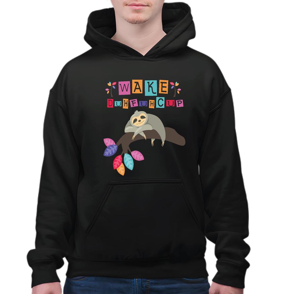 Wake Up Sloth Motivational Morning Inspiration Rude Awakening Encouragement Black and Muticolor Unisex Hoodie