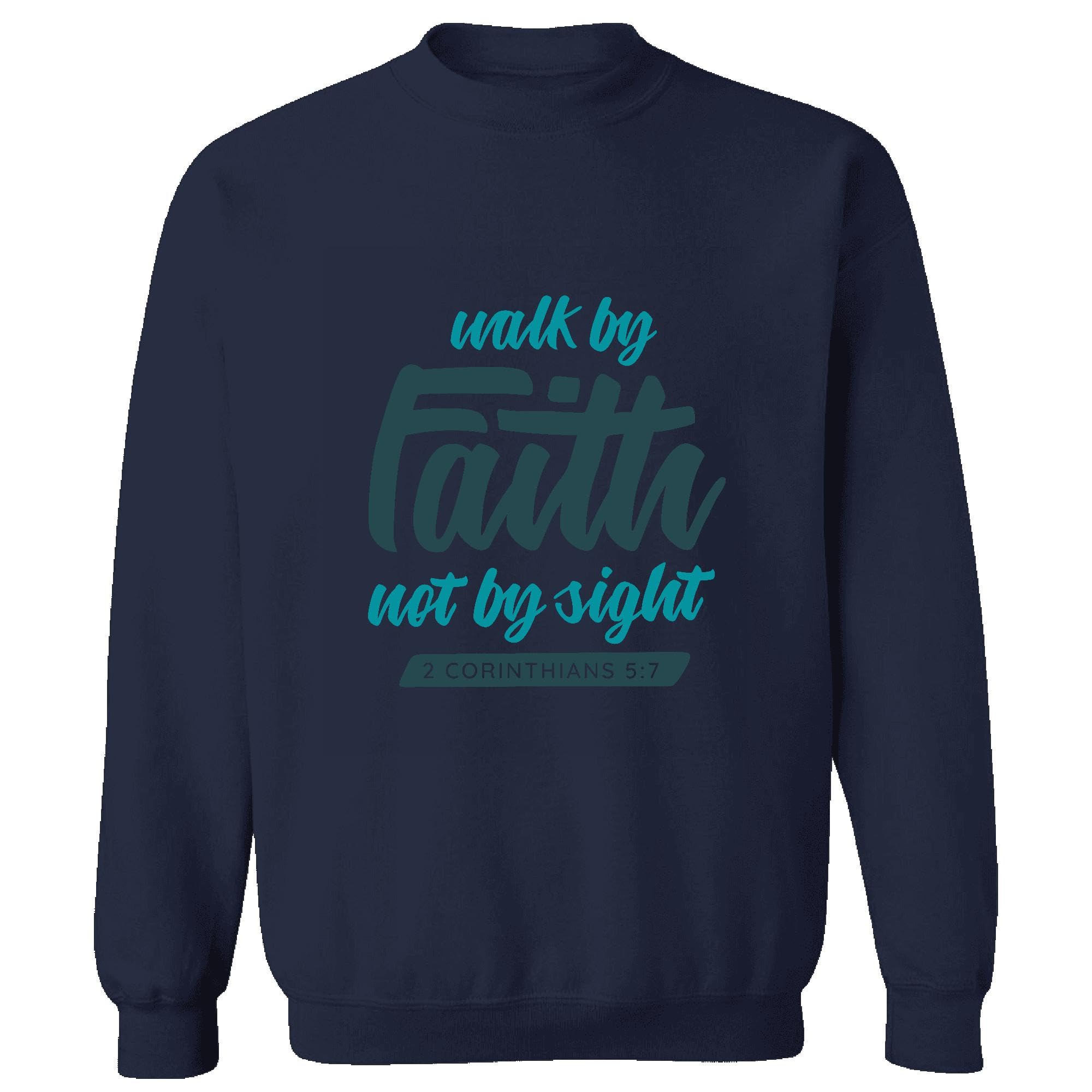 Walk By Faith Christian Gift Inspirational Quote for Believers Navy Muticolor Unisex Sweatshirt