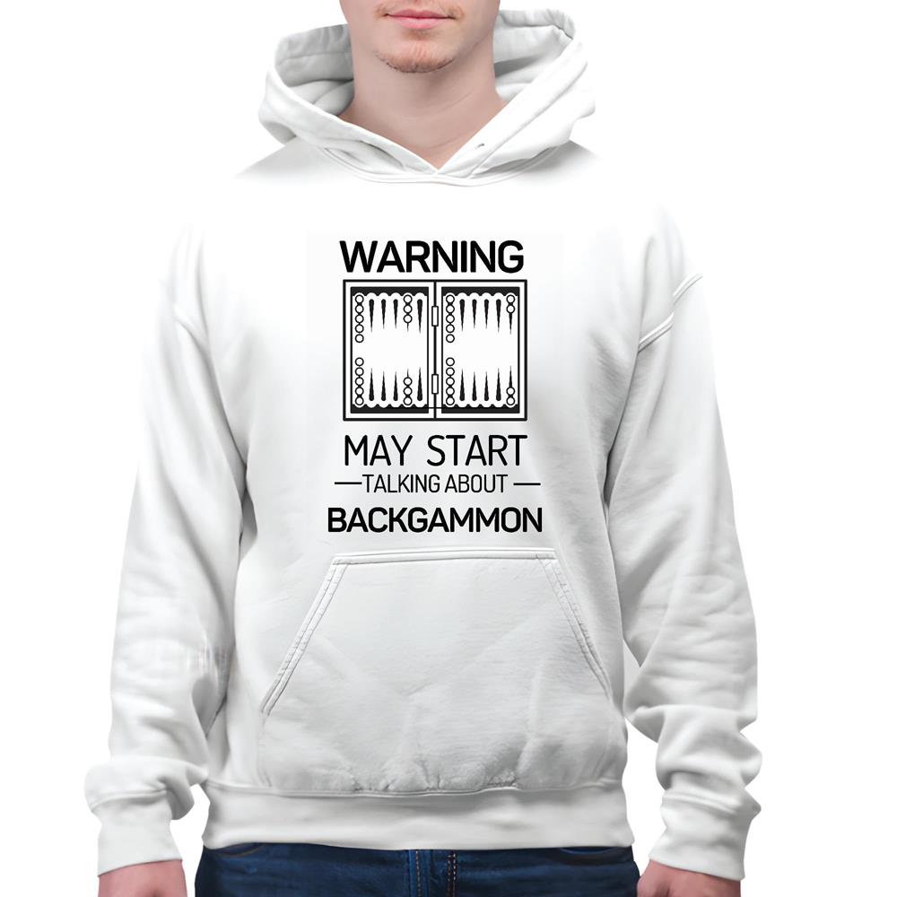 Warning May Start Talking About Backgammon White and Muticolor Unisex Hoodie