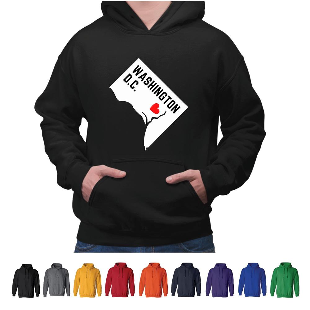 Washington DC State Flag Map Gift for Tourists and Locals Gray and Muticolor Unisex Hoodie