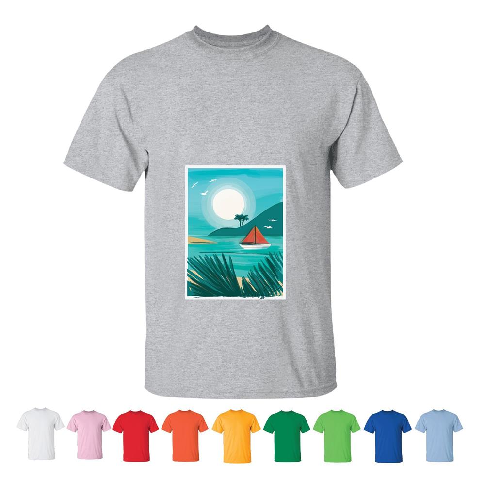 Watercolor Beach Landscape Gift for Nature Lovers and Beachgoers Men Women White Gray T shirt